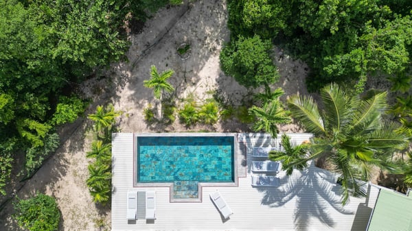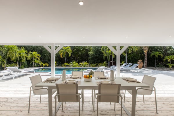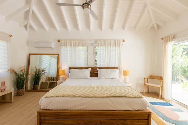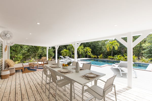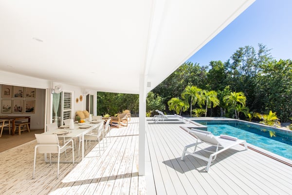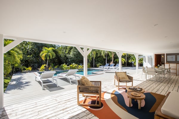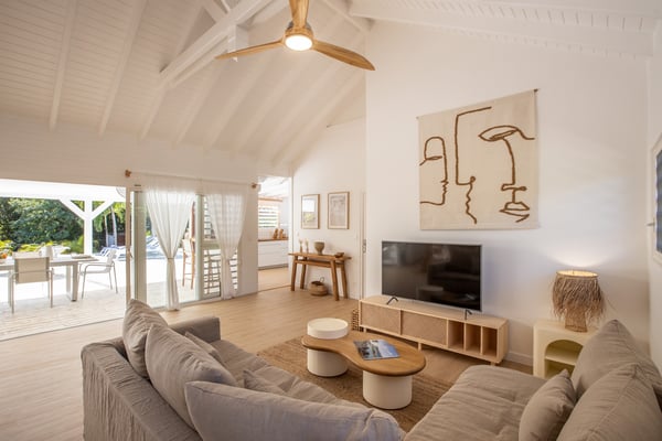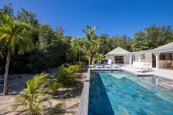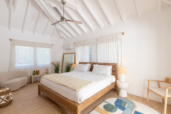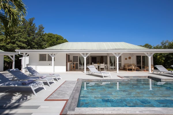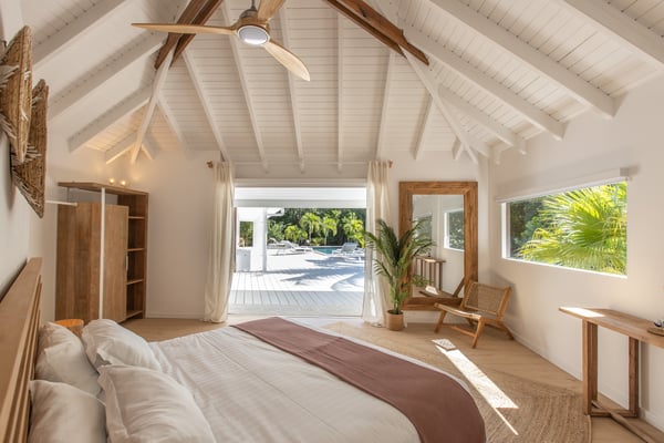 Villa Monchal stands as the epitome of a dream honeymoon destination, offering a perfect blend of luxury, seclusion, and natural beauty. Nestled within the enchanting landscapes of St. Martin, Villa Monchal beckons as the quintessential honeymoon hideaway, promising an idyllic retreat for couples seeking romance and tranquility. Situated just a few steps away from the pristine shores of Plum Bay Beach, this exquisite villa captures the essence of Caribbean luxury. The villa's interior spaces are thoughtfully designed, with an open-concept layout that seamlessly connects the living, dining, and kitchen areas. The decor exudes a sophisticated tropical aesthetic, combining neutral tones with vibrant pops of Caribbean-inspired colors. High ceilings and large windows enhance the sense of spaciousness, creating an airy ambiance that complements the tropical surroundings. The villa features two primary bedrooms, each adorned with an ensuite bathroom. The first primary bedroom resides within the main house, seamlessly blending modern elegance with tropical charm. Here, large windows frame panoramic views of the lush surroundings, inviting in the warm Caribbean sunlight. The ensuite bathroom boasts contemporary amenities, offering a private oasis for relaxation. For an extra touch of seclusion and romance, the second primary bedroom is housed in an individual bungalow. Surrounded by verdant gardens and swaying palm trees, this standalone retreat creates an intimate sanctuary for couples to savor each moment. The ensuite bathroom is a haven of luxury, providing a lavish space for unwinding after a day of sun-soaked adventures. Additionally, Villa Monchal offers a third bedroom in the main house with an adjacent bathroom, making it an ideal accommodation for small groups or families. Stepping outside, Villa Monchal reveals a private haven of outdoor indulgence. The expansive terrace is adorned with plush loungers and a refreshing pool, providing an inviting space for relaxation and sunbathing. Al fresco dining becomes a romantic affair as the terrace offers a picturesque setting with views of the lush gardens. With its prime location near Plum Bay Beach and its thoughtfully designed accommodations, this villa creates an unforgettable setting for couples embarking on the journey of a lifetime.