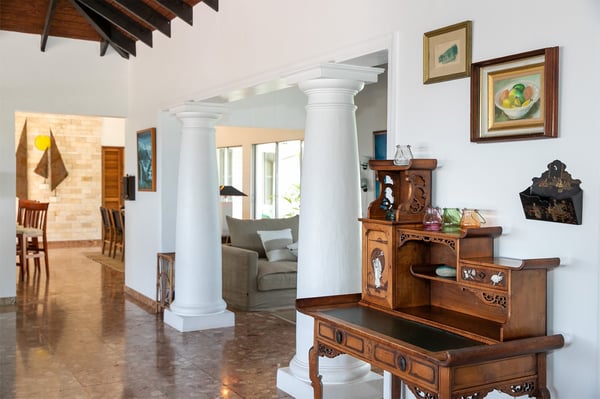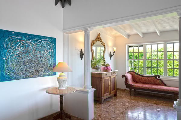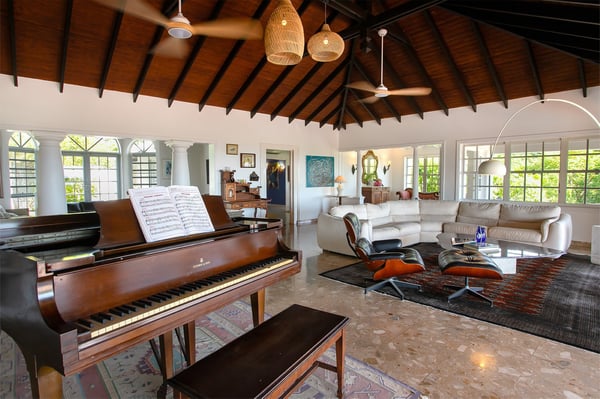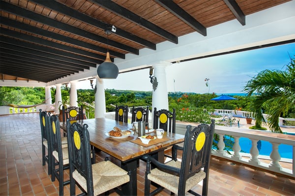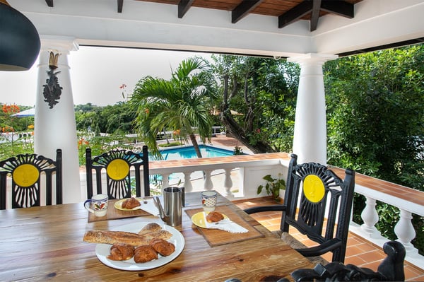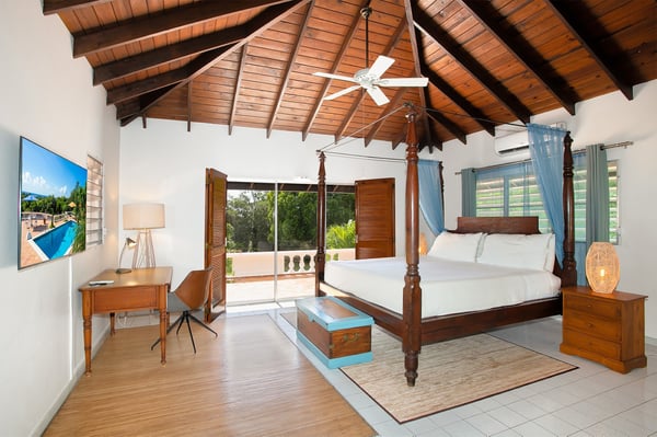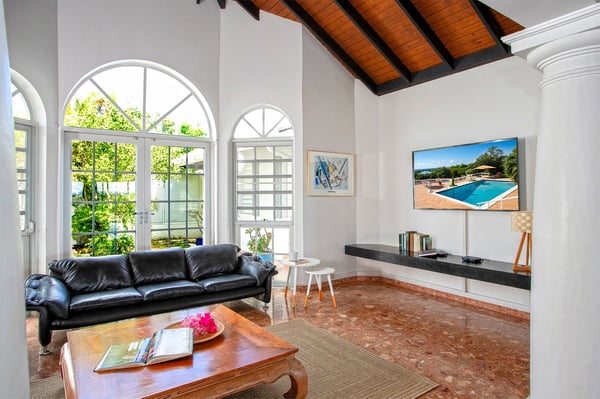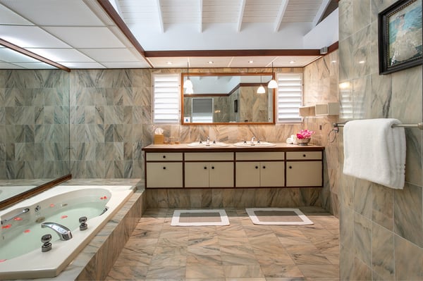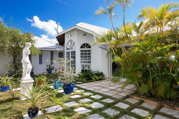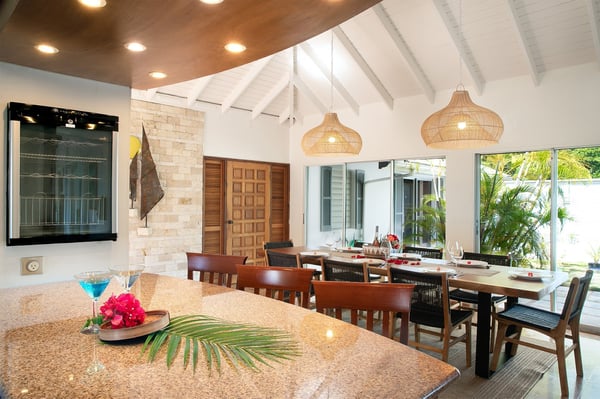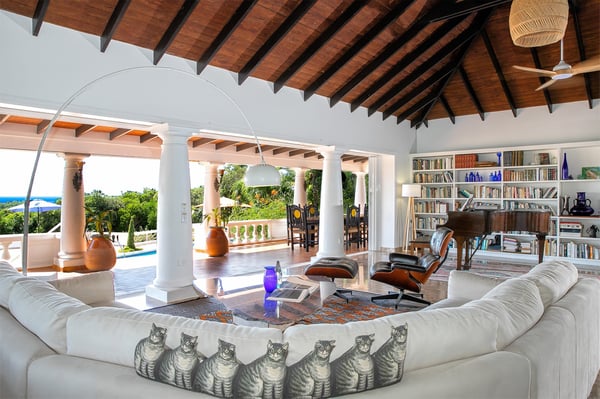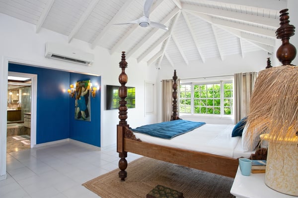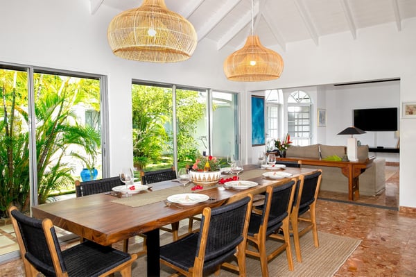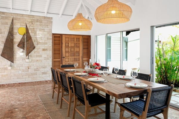 Welcome to "Les Zephyrs," a stunning three-bedroom vacation rental nestled in the prestigious Terres Basses region of St. Martin. This spacious villa boasts an elegant colonial West Indian design and features three bedrooms, three bathrooms, a living room, porch, dining room, kitchen, TV room, patio, and a refreshing swimming pool with a deck. The U-shaped layout surrounds a beautiful flowered interior courtyard, providing a tranquil and picturesque setting. From the terrace, enjoy breathtaking views of the Caribbean Sea, with the islands of Saba and St. Eustatius in the distance, complemented by the foreground presence of La Samanna Hotel and the pristine Baie Longue Beach area. The interior showcases a harmonious blend of antique and modern furnishings on its marble floors, creating an atmosphere of timeless sophistication. Noteworthy features include a grand Steinway piano in the spacious living room and a 24 ft. roll-away glass sliding door that seamlessly connects the indoor and outdoor spaces. The outdoor area of Les Zephyrs is a haven of relaxation and entertainment. The inviting swimming pool, surrounded by a well-appointed deck, provides the perfect spot for basking in the Caribbean sun. There are areas with shaded retreats for al fresco dining or simply unwinding with a good book. The meticulously landscaped grounds enhance the overall ambiance, creating a private oasis where guests can savor the beauty of St. Martin's tropical surroundings. Indulge in comfort within the villa's interior, where the living room and entertainment room provide ample space for socializing and leisure. The living room, adorned with a grand Steinway piano, opens up to the terrace, allowing the gentle sea breeze to complement the elegant interior. A dedicated TV room features a TV, DVD, and stereo system, ensuring that entertainment options are as abundant as the natural beauty surrounding the property. The kitchen at Les Zephyrs is fully equipped with modern appliances. Whether you're a gourmet chef or prefer casual dining, this kitchen provides everything needed to prepare delicious meals. The adjacent dining room, with its tasteful decor, offers a delightful space for enjoying culinary creations with friends and family. The three bedrooms at Les Zephyrs feature original antique four-poster king-size beds, ensuring a restful night's sleep. All three bedrooms come with en-suite bathrooms equipped with showers, and the main bedroom boasts a luxurious Jacuzzi tub. With split system air-conditioning and optional ceiling fans in every bedroom, guests can customize their preferred climate for ultimate comfort. Situated in Terres Basses, St. Martin's exclusive residential district, Les Zephyrs offers a prime location for an unforgettable vacation. The proximity to Baie Longue Beach, one of St. Martin's finest, allows for leisurely strolls along the sandy shores. Additionally, Baie Rouge Beach, Cupecoy Beach, Plum Bay Beach, and Mullet Bay are just a short drive away, offering a variety of beach experiences. Whether you're seeking tranquillity, outdoor adventure, or vibrant nightlife, Les Zephyrs provides a luxurious base for an idyllic St. Martin getaway.