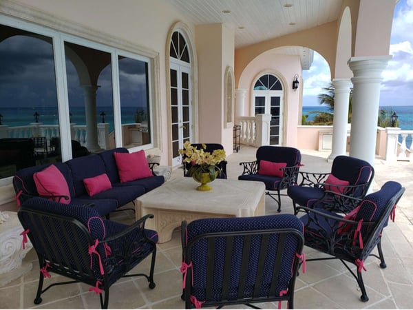 Miramar is a one-of-a-kind luxurious mansion in a private estate perched on a bluff overlooking the Caribbean Sea. The former Appleton Estate, featured in Elite Traveler's 2017 Top Ten Villas in the Caribbean, is a villa-mansion located in a most extraordinary seafront setting and is custom-designed to luxuriously integrate comfort and elegance. Miramar is found in the beautiful Estate Solitude on the northeast shore of St. Croix. Guests enter past a private gate to a columned portico and fountain, and first to the mansion's 2400 square foot Great Room. The Great Room is beautifully enhanced by sparkling crystal chandeliers, sculpture and superb lighting throughout, with unobstructed and breathtaking views of the Caribbean Sea and nearby Buck Island. The Great Room's high-coffered ceilings are supported by grand columns that run down to Italian marble floors, accented with oriental area rugs. A lavish living room area features a 70-inch LED television with surround sound. The Great Room also features a formal dining area, an 18-foot granite-topped wet bar with an ice maker and beverage coolers, which looks out to sea, and an impressive gourmet kitchen. There's also a Yamaha electronic piano for your entertainment. The kitchen contains black granite countertops and custom cabinetry, well designed and complete with warming drawers. It is impressively equipped with top Wolf, Sub-Zero and Asko appliances and a bounty of cook's tools. Just off the dining area and kitchen, through arched doorways, are the powder room and laundry. Miramar's heated infinity pool and sun terrace are found outside the French doors on either side of the bar. Cushioned patio furniture; chairs, tables, and a large coral-stone outdoor dining table are placed under a columned shady covered area, perfect for alfresco dining and cocktails with music, and a stone and stainless steel gas grill. There's also abundant space to relax outside the shade, on cushioned pool chairs and lounges. Sunbathers will relish under the blue sky facing the blue sea, with unparalleled views of famous Buck Island in the near distance, and the parade of passing pelicans, yachts and kite surfers. Miramar's east wing is the air-conditioned king master suite, a spacious room with a sitting area and a more delightful ocean and Buck Island views. The ensuite bath of this lavish room features separate his and hers vanities and enclosed water closets, dressing areas and custom walk-in closets with many drawers and endless space. His and her areas are separated by a central glassed-in shower and a jacuzzi bathtub. French doors lead directly to the pool terrace outside. Stairs descend from the master suite within Miramar's east wing to two king bedrooms with satellite HDTV and a large bedroom with two queen poster beds, all air-conditioned. Both of the two king bedrooms offer delightful sea views and en-suite baths and/or shower with separate water closets. The first king bed has an inlaid wood headboard, and the second king bed features a scrolled metal bedstead. The three bedrooms share a two-level patio just outside their French doors, overlooking a varied and picturesque arrangement of native flowers and plants, as well as the clear blue sea and striking views of Buck Island. A few more stairs bring you down to Miramar's air-conditioned gym with satellite 4K Ultra HDTV; cushioned rubber flooring and a NordicTrack treadmill, elliptical strider and recumbent bicycle; free weights and a versatile exercise bench. Once again, you'll hardly notice time passing with the striking ocean and Buck Island views before you, and satellite TV. In the west wing of Miramar's main level is the second king master bedroom. This suite is air-conditioned with an expansive ocean-view and features a sunken living area with satellite TV, and French doors, which open directly to the pool and terrace. The in-suite bath has double vanity sinks, a glassed-in shower stall, a Jacuzzi tub, and a separate water closet. Adjacent to the second master suite is the library/office, an air-conditioned and handsome room in which to work if you must or to relax and read. A generous library of books and a cozy sitting area are available for one's leisure. Expansive Miramar showcases creative design and rooms always oriented to the sea. Elaborate French doors with artfully framed eyebrow windows accentuate the breathtaking sea views and smart louvred wood panels in every room slide back and forth at a touch to perfectly adjust the natural light to your taste. Craftsman-quality custom cabinetry and tile work in addition to colourful original art and stunning designer furnishings throughout the mansion elevate this substantial property to an impressive and finely finished level. Gold fixtures and Miramar-monogrammed towels and bathrobes adorn each bath. For luxury travellers looking for a luxurious vacation experience with a bounty of amenities and comfort in a secluded and sublime location landscaped with rich tropical flora, superb Miramar is unquestionably THE villa choice on St. Croix five stars, plus!