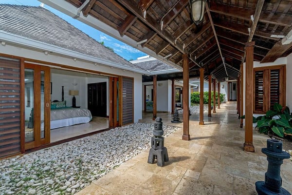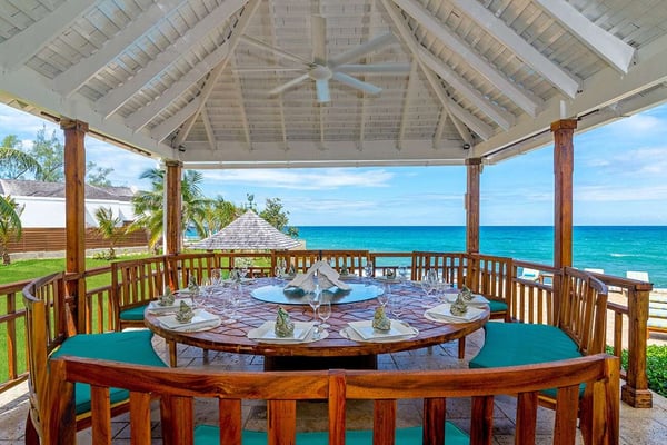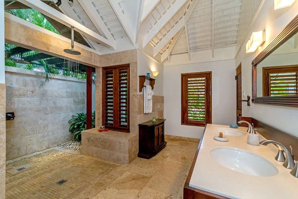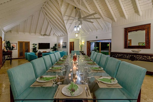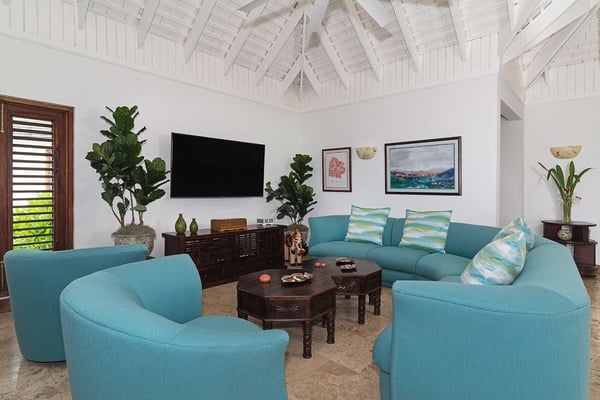 The Tryall Club requires all villa and condo guests to become members during their stay via a Temporary Membership Fee ($) (plus a 15% service charge). Children between the ages of 13 and 15 pay at a discounted rate (plus a 15% service charge). Guests can also pay per day, for guests ages 16 and older, who stay for one to four days. This can be either prepaid or upon arrival at the Club. For children 12 years of age and younger, our Temporary Memberships are complimentary. Please contact a Villa Specialist for exact pricing! For a taste of paradise where waves kiss the shore and trade winds sway the palms, Karma Bay delivers an unforgettable escape. This stunning waterfront villa blends Asian and Caribbean influences with vibrant colors and luxurious touches. If you can pull yourself away, the main beach is just steps away, and the Club’s many amenities are a short golf cart ride. Karma Bay features six air-conditioned bedrooms, each with a media system and a private en suite bathroom with waterfall showers. Two suites offer open-air shower areas. Five bedrooms have king-sized beds, while one has twins that can convert to a king. Waterfront-facing rooms open onto private terraces. Four bedrooms connect to the main house via covered pavilions with ocean and garden views. Each bedroom is equipped with a personal cell phone for direct butler service. The spacious living room and veranda offer breathtaking sea views, while the expansive pool deck and sprawling lawns provide plenty of space to unwind. A barbecue lawn is perfect for casual outdoor gatherings. Guests can dine in the oceanfront gazebo or the elegant indoor dining room, where the villa’s talented chef will impress with culinary creativity. Karma Bay includes three complimentary golf carts for guest use.
