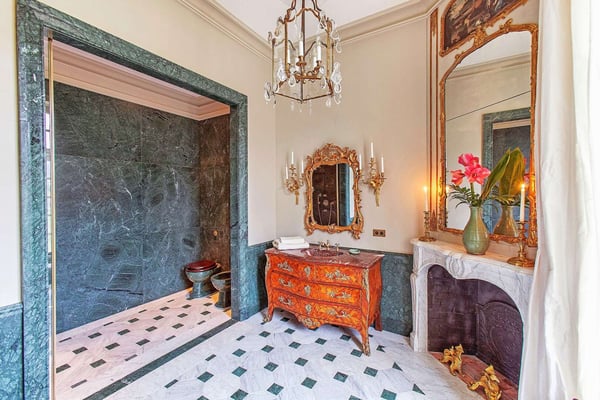 Chateau de Villette stands as a magnificent private Estate, located just 35 minutes northwest of Paris and originally designed by Mansart around 1668. This enchanting property holds a special place in the hearts of many, having been featured in Dan Brown's best-selling novel, The Da Vinci Code. The main Chateau can accommodate up to 12 guests, offering six splendid bedrooms for a truly luxurious stay. The Chateau seamlessly combines simplicity and grandeur, showcasing on the ground floor an impressive octagonal Grand Salon, an elegant dining room with a meticulously carved stone buffet, wine cooling fountains, and captivating blue dessus-de-portes by Boucher. There is also a charming Music Salon adorned with magnificent boiseries, a stately Library, and a welcoming stone Foyer. Ascending the Grand Staircase, guests will find themselves on the first floor, where they can indulge in the opulence of luxurious en-suite bedrooms. Outside, the Chateau boasts magnificent gardens à la française, offering a picturesque setting to wander and relax. During the summer months, guests can enjoy the heated swimming pool, adding to the delightful experience. Additionally, for those seeking to maintain their fitness routines, a well-equipped gym is also available. Chateau de Villette promises a truly magical and unforgettable stay, combining history, elegance, and modern comforts for a perfect retreat near the vibrant city of Paris.