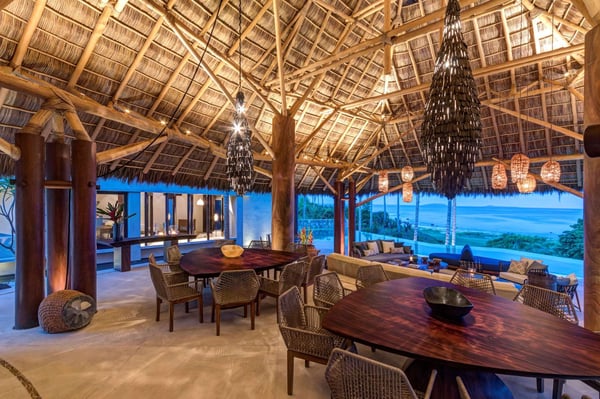 Located amidst Punta Mita's exclusive residential community and designed by renowned architect Juan Collignon & interior designer Karen Collignon, Casa Koko is a breathtaking nine-bedroom private oceanfront villa. This magnificent vacation rental villa comes with Golf Premier Membership to St. Regis & Punta Mita amenities, and it is fully staffed with a house manager, private chef, waiters and housekeeper, making our guests feel well-pampered when staying with us. Two oceanfront master bedrooms, two ocean-view guest bedrooms, five garden bedrooms, all of them with en-suite bathrooms, a dining terrace beneath a palm-thatched roof, spa, fitness room, jacuzzi and an infinity pool fading into the Pacific ocean's horizon make Casa Koko the ultimate family or group getaway destination. By day, off-road through virgin rainforests and secluded beaches, get up-close and personal with the whales and creatures just offshore, surf swell after swell, or head next door for golf, tennis, beach clubs and restaurants. Head back to the villa at sundown for a private evening yoga lesson or dinner with the house chef, gearing up for yet another day in paradise...