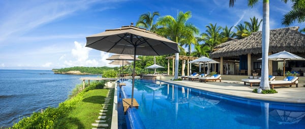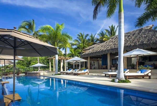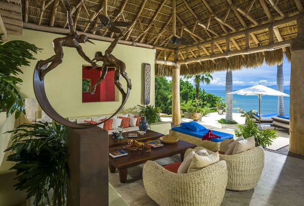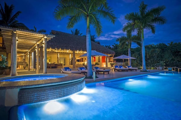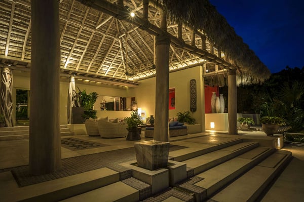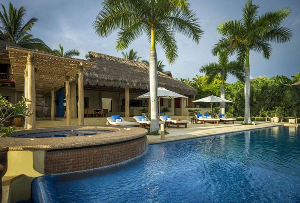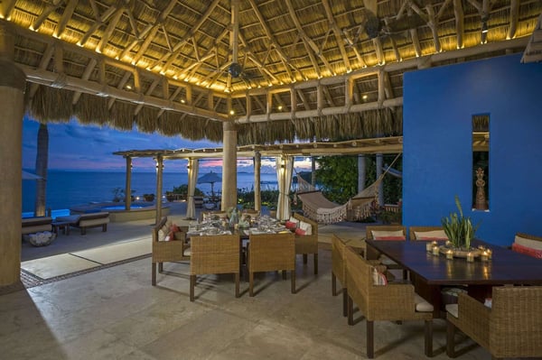 Situated in a private enclave on the North Shore in the exclusive Pontoquito Community, Casa La Caleta is a masterpiece of modern Mexican architecture, amidst the backdrop of jungle landscapes and stunning shorelines. Carefully designed by a masterful team of artisans and master architects, La Caleta melds 12,400-square feet of indoor-outdoor living spaces seamlessly under a palapa-style thatched roof. The spacious kitchen is equipped with state-of-the-art appliances, and an outdoor pizza oven and grilling area, whether cooking for yourself or hiring a private Chef for a five-star experience at home. The covered great room boasts varied seating for comfortable lounging and elegant dining, along with a direct view of the saltwater infinity pool and hot tub, which seem to extend into the ocean beyond. There is also a separate beachfront dining pavilion with a sub-kitchen and bath, a stunning locale for oceanfront meals. The home is also surrounded by sweeping, meticulously-kept gardens and lawn space, giving the ultimate feeling of privacy amidst paradise. Each bedroom is climate-controlled and appointed with designer furnishings and hotel-quality linens for your comfort. They also feature ensuite bathrooms with standalone showers, and private balconies overlooking the ocean and garden areas. The home has a fitness room with top-of-the-line equipment, as well as a separate massage room, a fully-wired home theater, and a wine cave where you can store your finest bottles. The home is equipped with Wifi, satellite television, a built-in water purification system, and beach gear including two ocean kayaks, snorkel gear, and an inflatable boat. The home also offers daily housekeeping and 24/7 security.