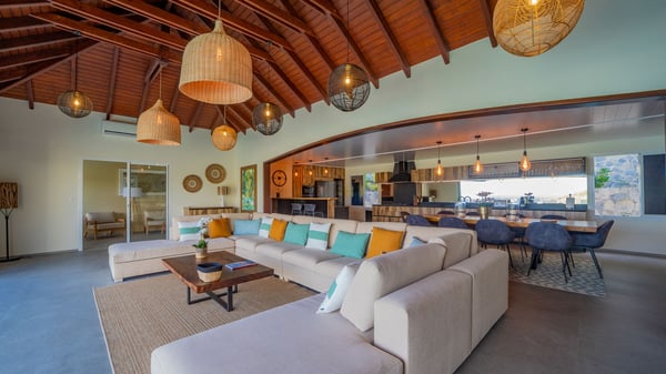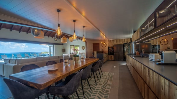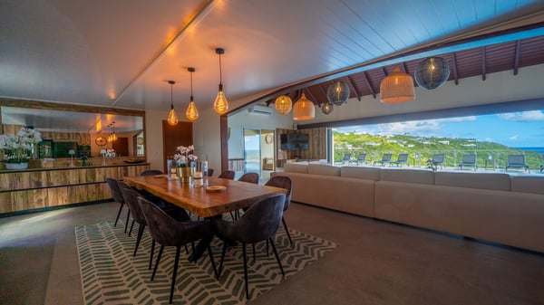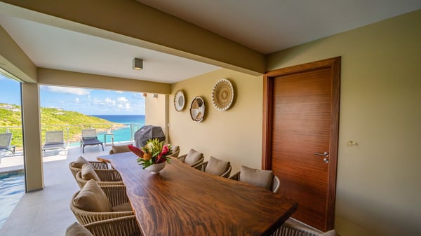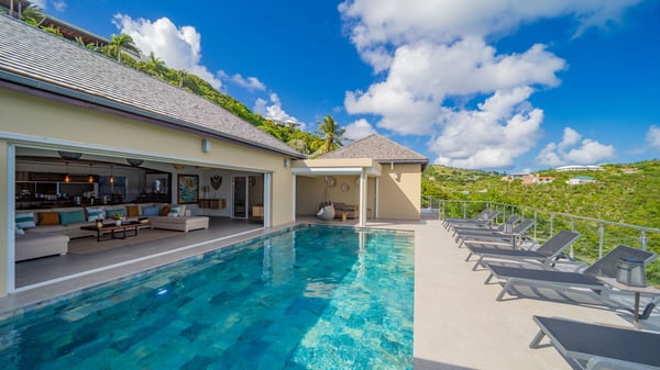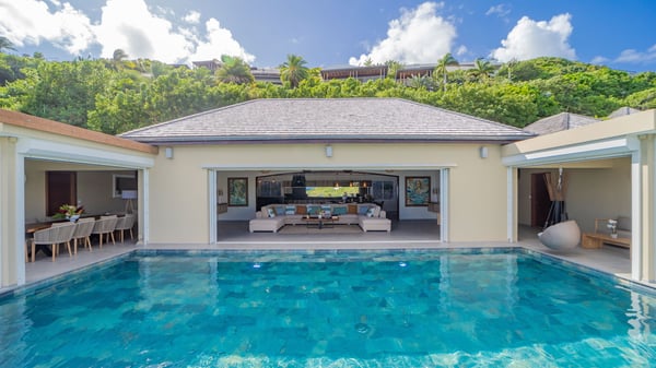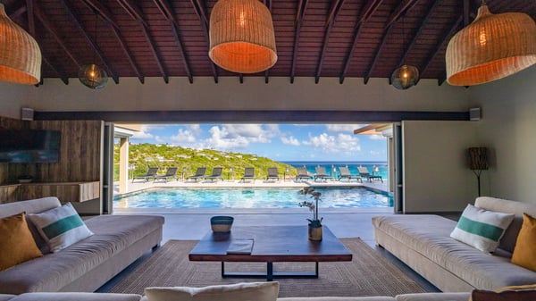 This was the perfect property for our family of ten ranging in ages from 15 to 72. . The open floor plan with five spacious suites (four with private decks and one with its own pool) kept drawing us back at the end of the day to enjoy the magnificent view of Marigot bay while lounging around the large pool. The villa offered many other amenities including a theatre and gym. We also enjoyed the beautiful collection of artwork throughout the villa. It was the PERFECT villa for our first trip to St Barts!