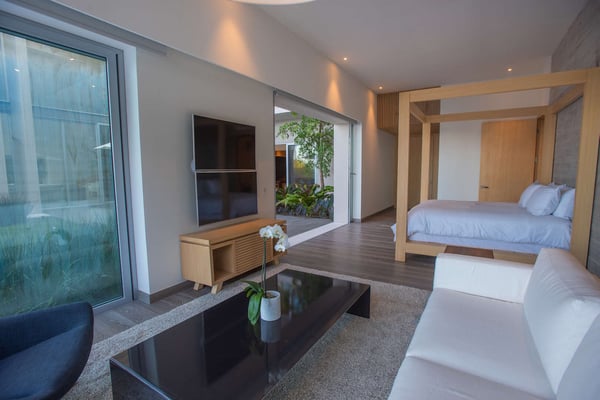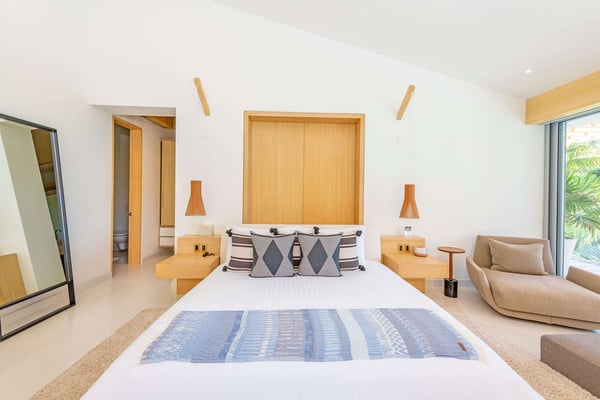 Nearby construction may result in noise disturbances. For further details on how this might affect your stay, please reach out to a villa specialist. The Premier Golf Membership grants access to Pacifico Golf Course ($), Bahia Golf Course ($), the Tennis Centre ($), the Fitness Center ($), El Surf Club based on min. consumption fee ($), St.Regis Beach Club based on availability and min. consumption fee ($), Pacifico Beach Club, Sufí Ocean Club and Kupuri Beach Club. Contact one of our Villa Specialists for more information. Casa Brisa, surrounded by vegetation and impressive ocean views, is located in the Punta Mita peninsula. The luxurious private residence comes with all the comforts desired to have an unforgettable time, as it combines modern design with all the technology and amenities needed to make your stay an amazing experience.