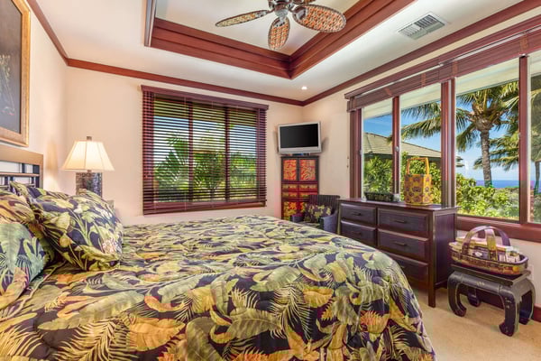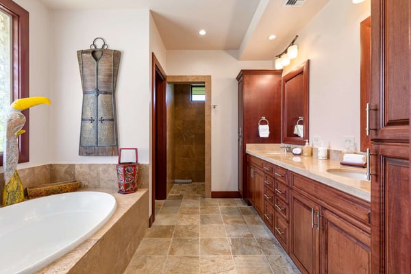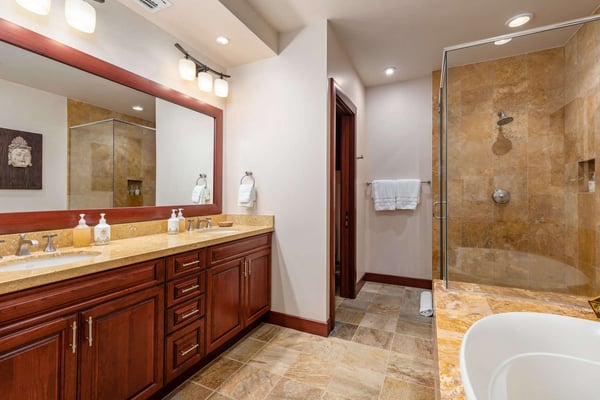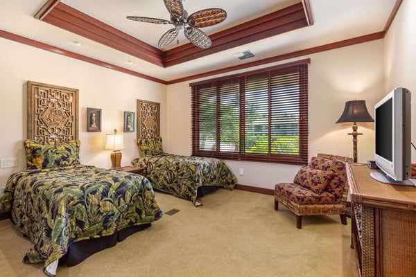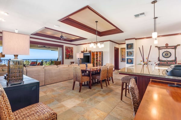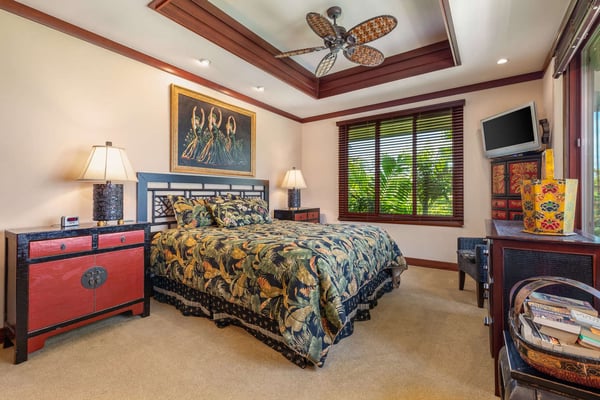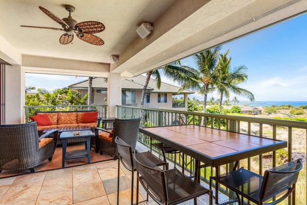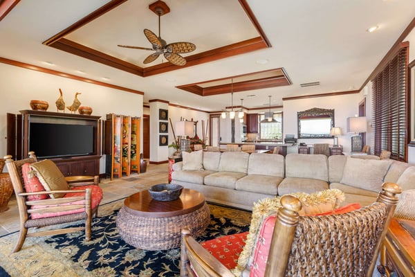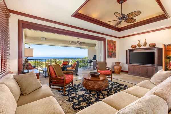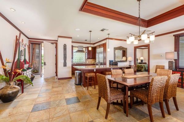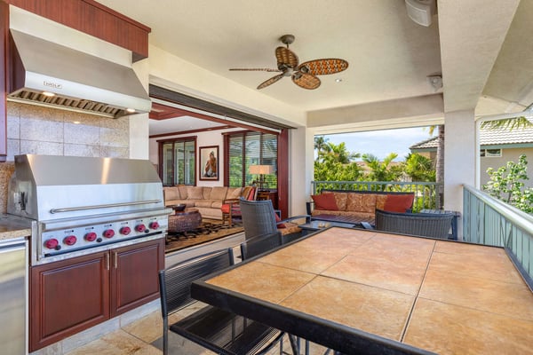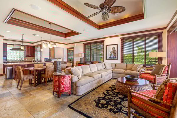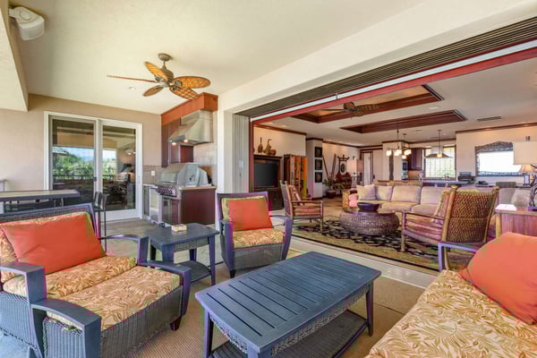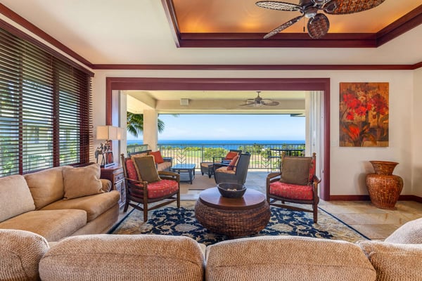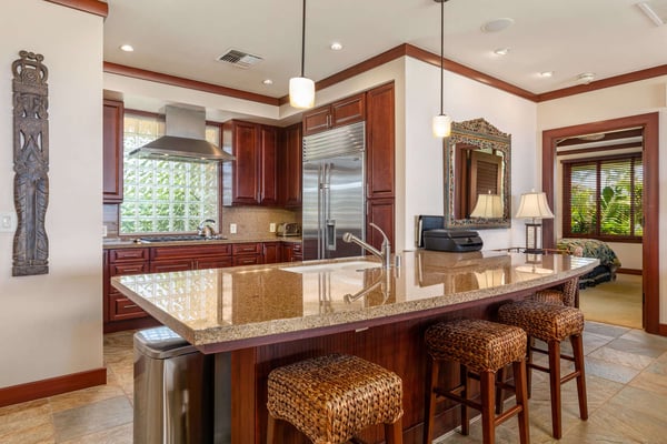 Guests of Hale Kai Pali have full use of all facilities with signing privileges at the Mauna Kea Beach and Hapuna Beach Prince Hotels, two incomparable white sand crescent beaches, two world-class golf courses, oceanfront tennis, spa, fitness, restaurants, and shops. A slice of paradise awaits you and your family. This upscale vacation home is the perfect place to relax and unwind while you experience the beauty and adventures that Hawaii has to offer. This condominium is a second-story, three-bedroom, three-bath duplex, with almost 2,500 sq. ft of living space and panoramic ocean and golf course views. The home is designer-decorated with mahogany wood trim and stone finishes throughout and includes a covered lanai complete with a wet bar, SubZero under-counter refrigerator, and a built-in Wolf stainless steel gas barbecue and rotisserie. There are two primary suites, both of which feature coffered ceilings and walk-in closets. The primary baths boast soaking tubs and spacious walk-in stone and glass showers. To enhance your travel experience, each room is fitted with new hypoallergenic pillows. A new fax machine, printer, scanner, high-speed Wi-Fi, and ample parking are available. The Hale ‘Ikena Amenity Center is exclusive to Wai’ula’ula homeowners and guests and is the epitome of a fitness, swimming, and activity center. Surrounded by a dramatic infinity edge pool that reaches towards the Pacific, there are shallow water sunning areas as well as oversized lounges for relaxing while enjoying the view of the horizon. This is the idyllic spot for a heart-pumping workout, a lazy day at the pool, or even a dinner party using the poolside kitchen or barbeque. Mauna Kea is located along the beautiful and famed Kohala Coast. This area of the island is quiet and peaceful, yet only a thirty-minute drive from the airport. The towns of Kawaihae and Waimea are conveniently close, five and twenty minutes respectively, with each offering a wide variety of dining and shopping options. We hope that you’ll get the chance to experience the beauty and serenity that a stay at Wai’ula’ula offers! This is a place where you will want to gather with your family and friends year after year. Hawaii State TAT ID#- TA-100-399-6160-01 // STVR-19-359830