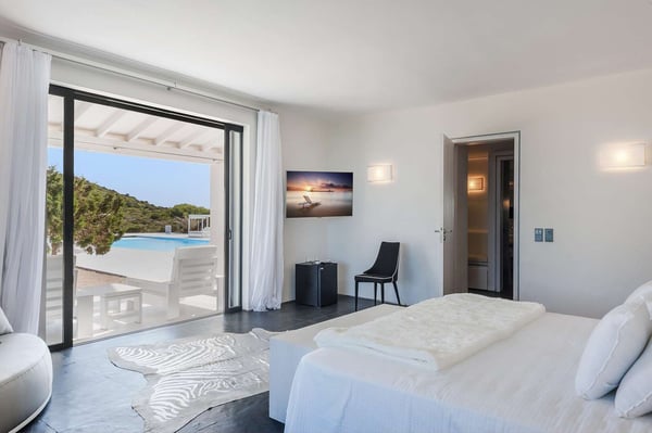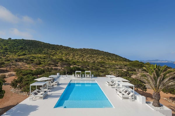 One of the most exclusive islands in the world, Tagomago Island, is located only 900 m from the North-East coast of Ibiza, Spain. At the heart of Tagomago lies the luxury villa that is the sole and exclusive residence on this stunningly beautiful private island. Created by a leading interior designer, the villa’s interiors reflect a contemporary, sophisticated aesthetic, furnished and finished to the highest quality – and with state-of-the-art technology. Tagomago offers everything you could possibly dream of, making it the ideal location for a unique family vacation or to celebrate an unforgettable event. It truly has it all! The whole private island of Tagomago covers a plot of 600.000 m2 in a breathtaking natural environment, offering you absolute privacy, high security, spectacular sunrises & sunsets, and a private jetty for mooring. Almost any kind of water sport is available at Tagomago, including activities such as; two jet skis, two tender-boats, water skiing, wakeboarding, paddle surfing, canoeing, fishing, snorkeling, sailing, and many more. On land, clients can take advantage of a scenic jogging course to Tagomago's lighthouse, nature walks, and hiking,g or enjoy some time by the private pool and the amazing outdoor fitness area. The villa has five double bedrooms, each with spa-style, en-suite bathroom and floor-to-ceiling windows, affording magnificent views of the sea and the Ibizan coastline. With its spacious living and dining areas – and complete professional kitchen – the villa is a magnificent setting for entertaining at the very highest level. Tagomago is located only five minutes away (by tender-boat) from the well-known bay of Pou des Lleo, situated in the North-East coast of Ibiza. The tender-boats are at the disposal of the guest 24 hours, so that they can move in and out of the Island whenever they please. Licence Number: 2014/050402
