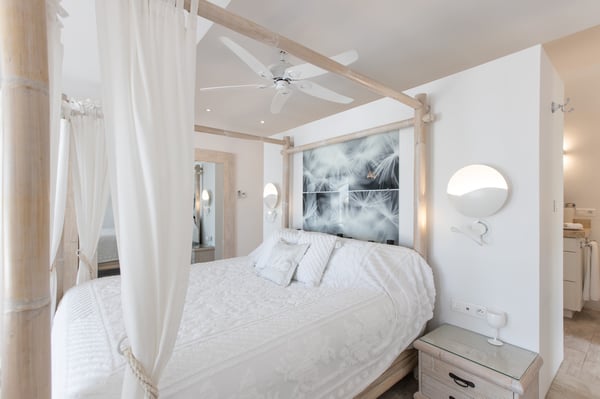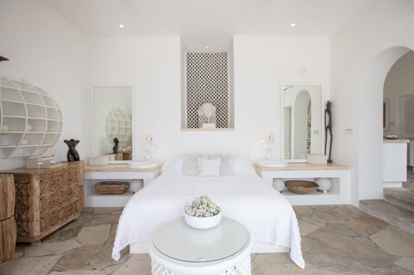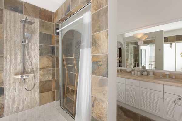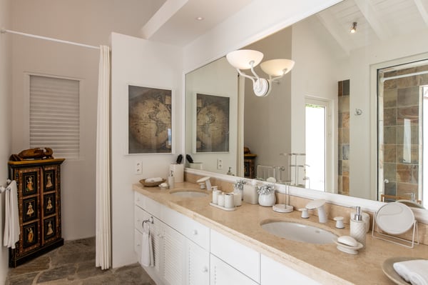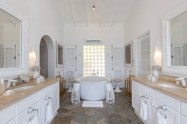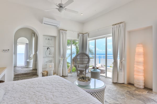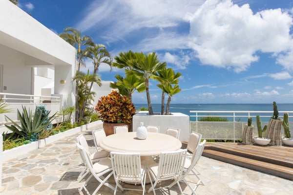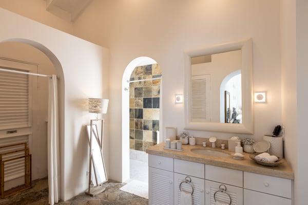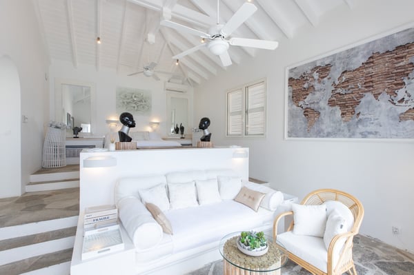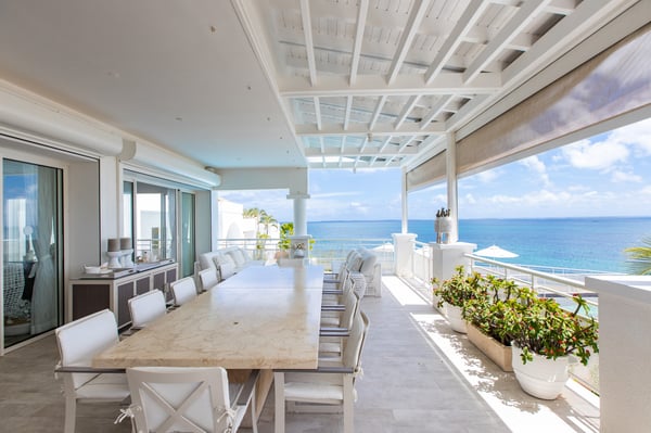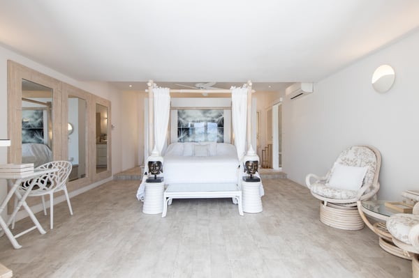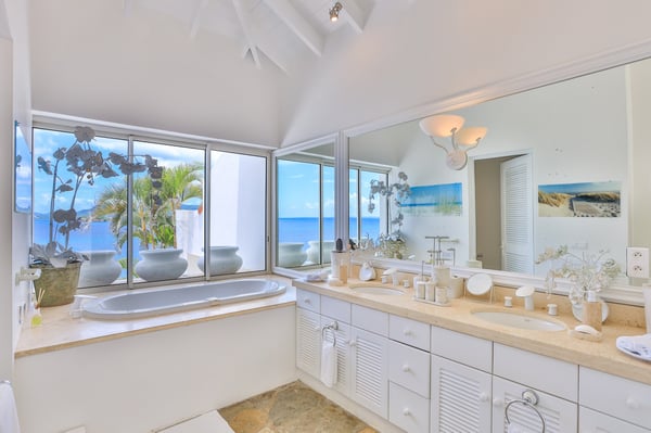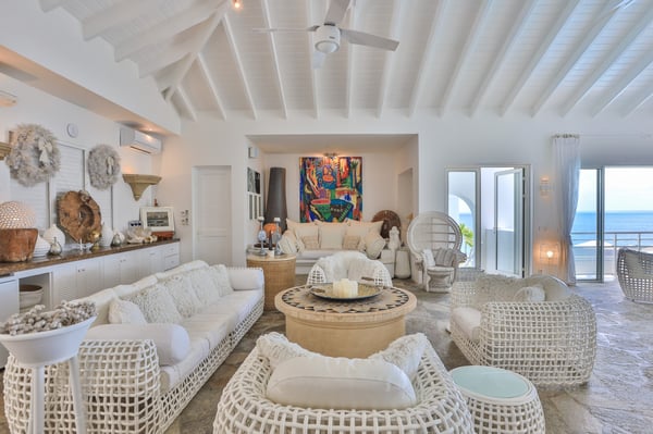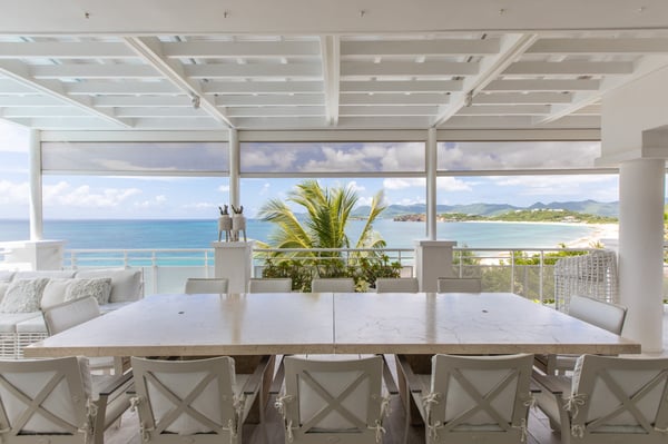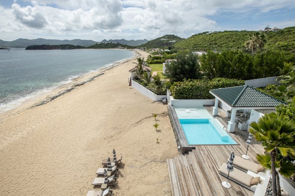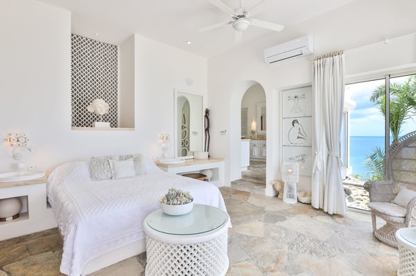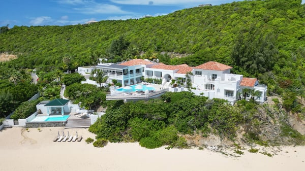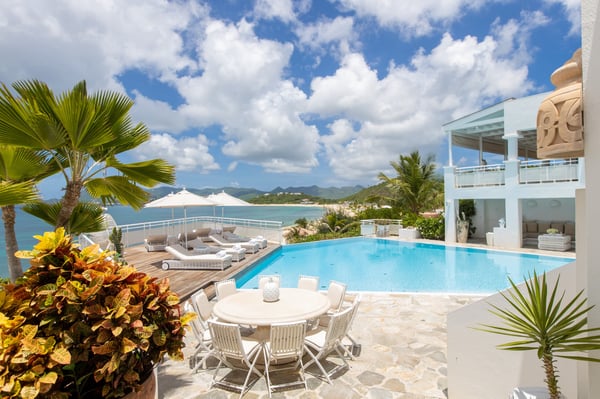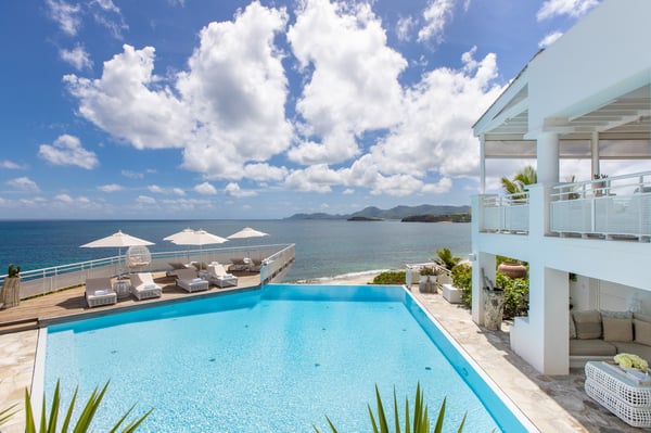 Located on Baie Rouge Beach, Villa L'Oasis on St. Martin is a one-of-a-kind masterpiece, seamlessly blending the captivating allure of Moroccan design with the timeless elegance of Greek architecture. This six-bedroom property is a haven where the two worlds meet, resulting in a stunning fusion of cultural aesthetics. The villa's facade showcases the iconic Greek-style white-washed walls, creating a striking contrast against the vibrant blue of the Caribbean sky and sea. The exterior is adorned with elements reminiscent of the Greek Cycladic islands, with domed architecture, arched doorways, and rocky stone pathways that wind through the lush gardens. Each of the six spacious bedrooms is a sanctuary of comfort and style, with king-size beds in every room and private terraces overlooking the turquoise waters of the Caribbean. The bathrooms reflect the elegance and modernity of this villa, offering every comfort to its guests, who will have the luxury of indoor and outdoor showers at their convenience. Villa L'Oasis boasts an array of amenities, including a private infinity pool surrounded by sun loungers, and a second pool at the beach level, allowing you to pass the pool to the sea in a fraction of a second in an immaculate luxury. Both pools have incredible views and abundant lounging. Please keep in mind that the pools are only heated from December 16th to April 15th. L'Oasis also features a gourmet kitchen where meals are exclusively prepared by the villa's private chef, a media room with a large Plasma screen, and gorgeous terraces that provide covered and open areas for conversation, lounging, and dining. Whether you're seeking rejuvenation at the spa, maintaining your fitness routine in the gym, or simply unwinding in the Jacuzzi, Villa L'Oasis ensures that every guest's well-being and relaxation needs are met, creating a truly extraordinary and memorable stay. Soaring on a lush cliff high above the beach, this paradise is not only a feast for the senses but also a haven of tranquility. Whether you're lounging by the pool, or gazing at the stars from the rooftop, Villa L'Oasis offers a memorable experience steeped in the natural beauty of Saint-Martin. It's the ideal place to relax, recharge, and create unforgettable memories in an atmosphere of pure luxury.
