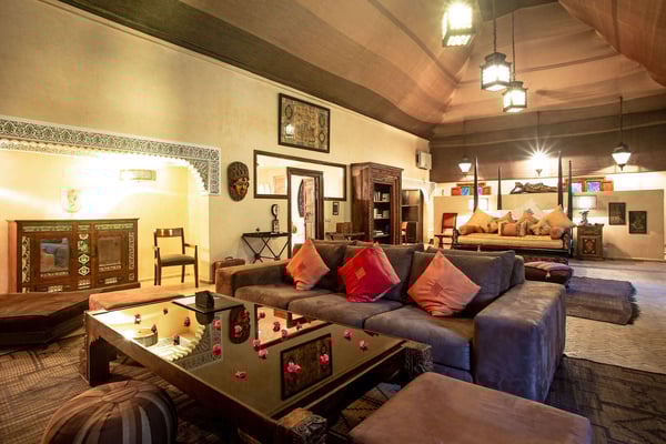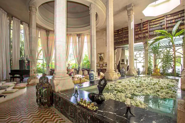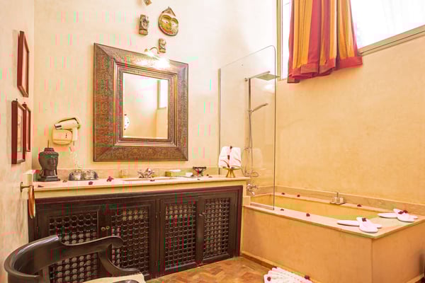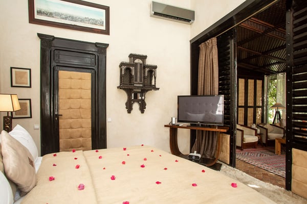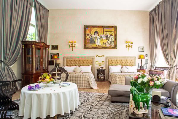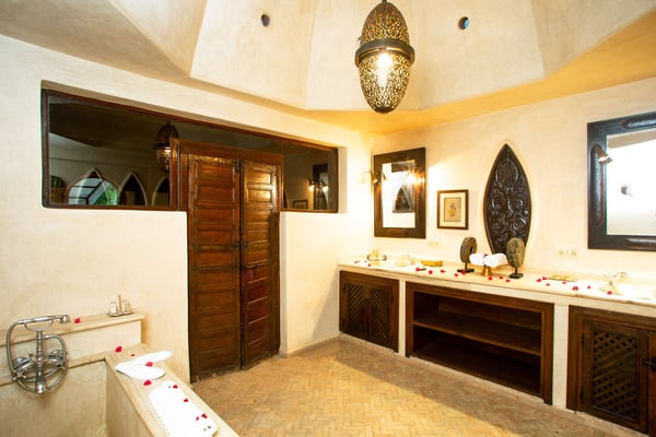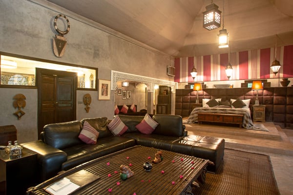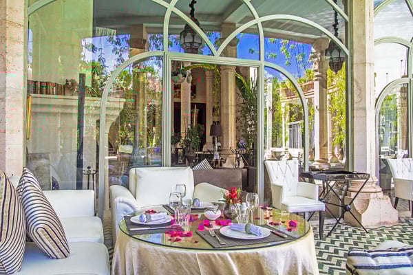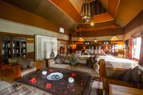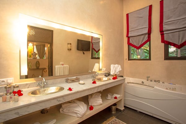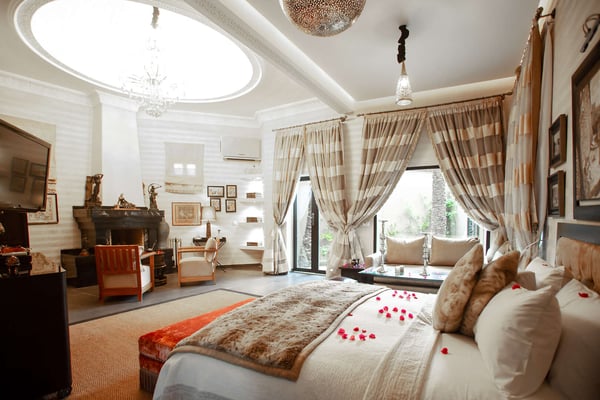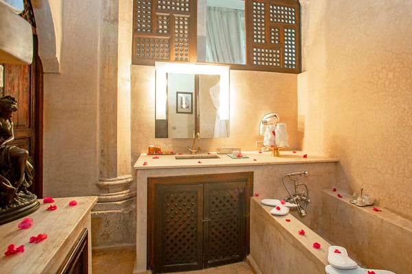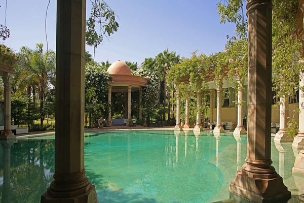 Nestled in a haven of greenery, totally secured, L'Abyssin is a mythical, very elegant and luxurious palace. The palace offers 16 bedrooms, 16 bathrooms, two outdoor swimming pools, one indoor pool, a hammam, and a tennis court, located at the door of the Red City, Marrakech. Ideal for big parties, large events, weddings, and family gatherings of up to 50 people at the palace. No charge for children under the age of five. Art lovers will enjoy an exclusive and exceptional private collection gathered by the owner who is a real ambassador of art.