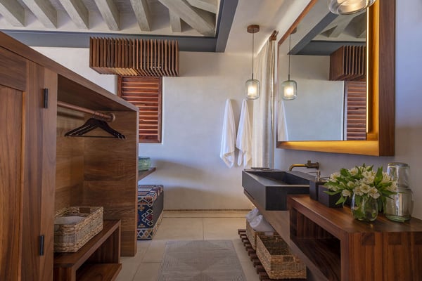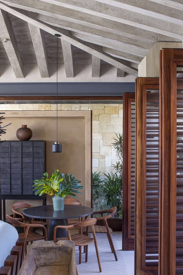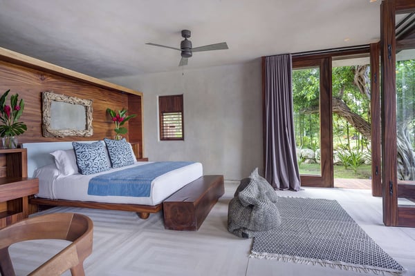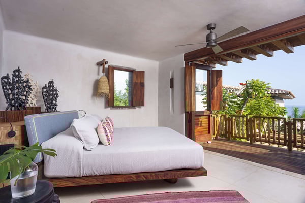 Casa Roka is a stunning, modern luxury property located in the Kupuri Estates development, within the exclusive gated resort community of Punta Mita, in the Riviera Nayarit; just 35 minutes north of Puerto Vallarta's Gustavo Díaz Ordaz International Airport. Located inside the gates of the exclusive Punta Mita Resort -home to two Jack Nicklaus Signature golf courses, Four Seasons and St. Regis Resorts- this beachfront luxury villa designed by renowned architect Manolo Mestre is the perfect destination for friends and family vacation, ideal to accommodate up to 14 guests. Casa Roka provides guests with a wide variety of first-class amenities and services designed to ensure a luxurious, unforgettable and wonderful vacation. A fully equipped gym as well as a massage bed and a golf cart are there to make your stay more enjoyable. All bedrooms include an ensuite bathroom with indoor shower, tv, air conditioning, ceiling fan, blow-dryer and safe. English and Spanish staff are included with this villa including a head butler and daily housekeeping. Outdoors you will find the perfect setting to enjoy the serenity of nature and white-sand beach, just steps from Kupuri Beach club where you can enjoy a day spent by your own private infinity pool, while a lush private garden with an outdoor bar leads you down to your own private cabana on the beach.