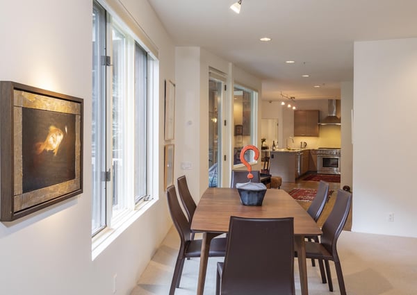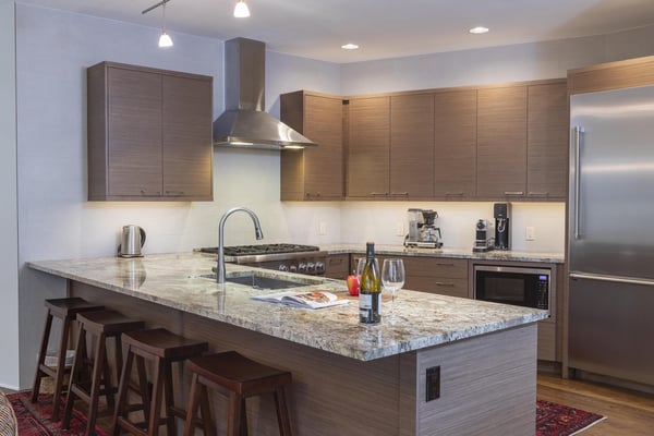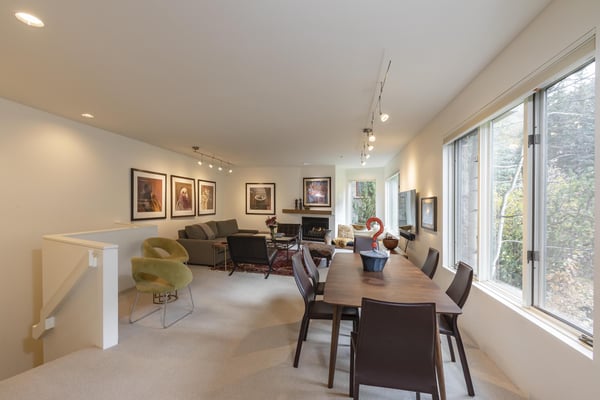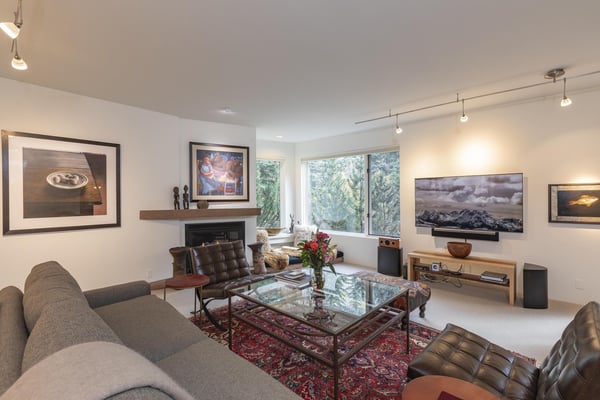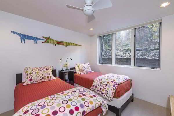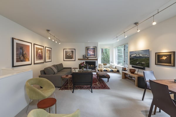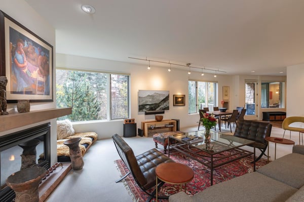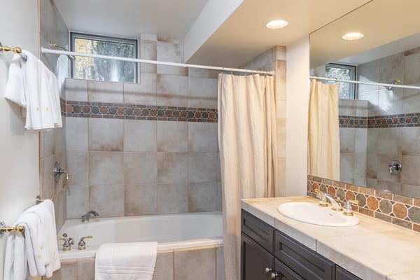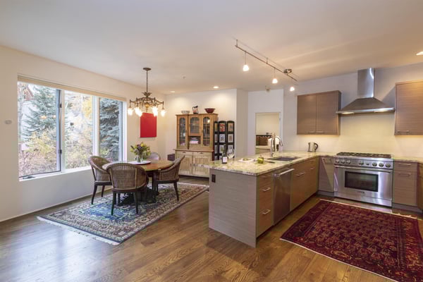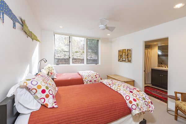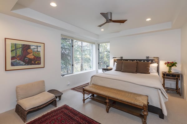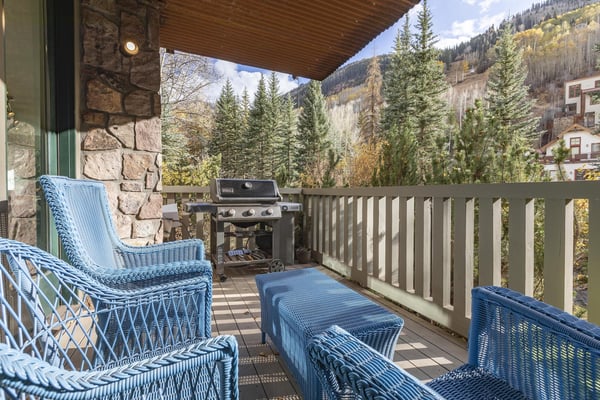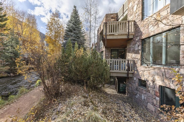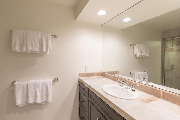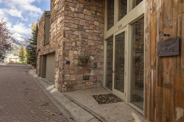 Nearby construction may result in noise disturbances. For further details on how this might affect your stay, please reach out to a villa specialist. Upon entering into the home, guests are greeted by San Miguel River views from the entire entry level. The recently remodelled gourmet kitchen lies to the right and offers granite countertops and stainless steel appliances that any family chef is sure to enjoy and bar seating for four. A breakfast table for four sits adjacent to the kitchen, making it the ideal place for coffee and conversation. A door leads out to the home's private patio, where the sounds of the river provide privacy and relaxation for those looking to grill a meal with a view. Just opposite the entry, a large living space plays host to a dining table with seating for six, as well as a sofa with two leather chairs which surround the flat-screen TV. A lounge area sits next to the room's gas fireplace, creating a perfect reading nook. Rounding out the home's main level is the luxurious primary suite. A king-size bed sits center stage, facing another gas which is accompanied by comfortable seating. The en suite bath offers a deep, jetted soaking tub, dual vanity sinks and a separate glass shower with a bench seat inside. The home's lowest level is occupied by two matching guest suites, each furnished with split king beds and en suite bathrooms. The bedding can accommodate two couples as king beds or 4 individuals as twin beds. One bathroom has a tub/shower combination with stacked washer and dryer; while the other has a glass shower.