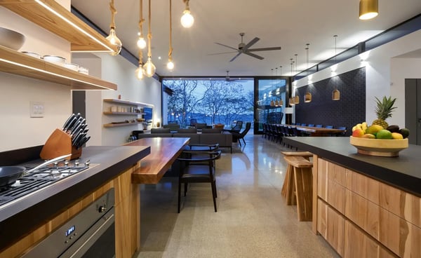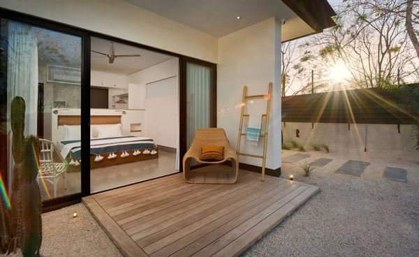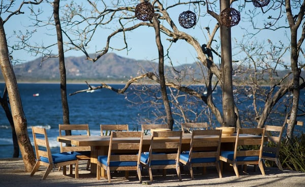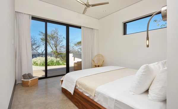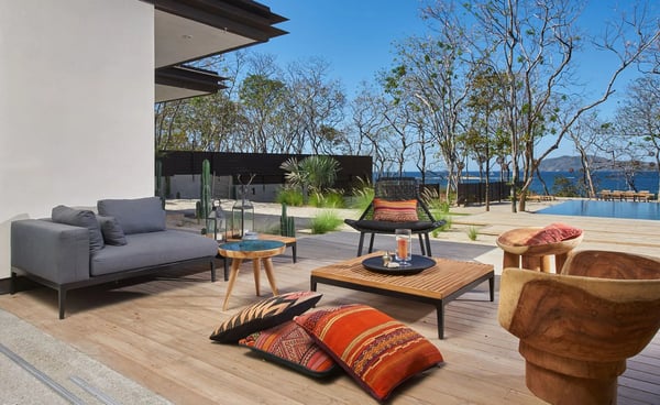 This 8-bedroom, 8.5-bathroom luxury villa comfortably accommodates big families, wedding groups, retreats, or groups of friends in a unique and private location. Morabeza is both a word and a concept, a lifestyle, a way of seeing and understanding things and life. The word says it all, namely open spirit, welcoming, hospitable, relaxed, and all the good things. It is, in a way, very similar to what the word ‘aloha’ means to Hawaiian islanders. This villa’s location is unique as it offers direct access to the beaches of Tamarindo and Playa Langosta (less than one minute's walk!) and a short 3-minute drive to town. Villa Morabeza comfortably sleeps up to 20 people in comfort and style featuring four primary bedrooms with ocean views, one guest bedroom with an internal patio view, and two kids’ bedrooms, each with double bunk beds. Some bedrooms have outdoor showers with ocean views. There is a separate studio, adjacent to the villa with a queen size bed, full bathroom, table and kitchenette, ideal for family members who want privacy or staff visiting with you (babysitters, chefs, etc.) The spacious living areas can be opened entirely towards the terrace, pool, and ocean view. The social area includes one big fully equipped kitchen and preparation kitchen, an island, and additional sitting at an integrated table. The dining area includes an 18-foot-long wooden table that will comfortably seat all 20 guests. The very large outdoor terrace includes lounge areas around the pool and a second dining table in front of the beach with spectacular views perfect for enjoying a cocktail while viewing an amazing sunsets.