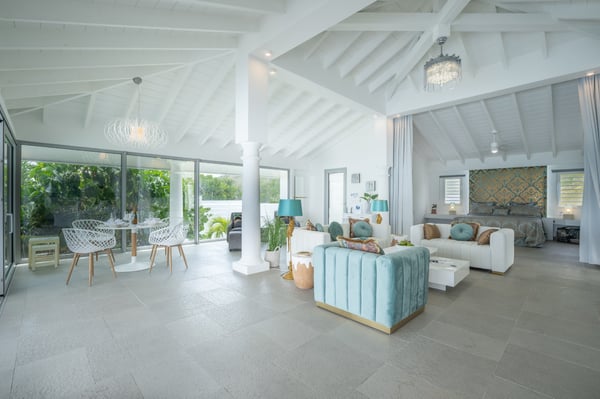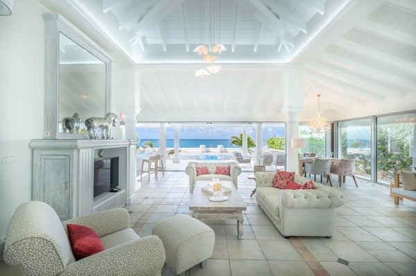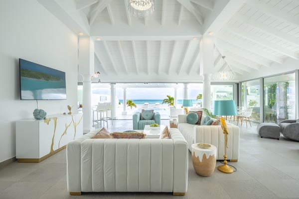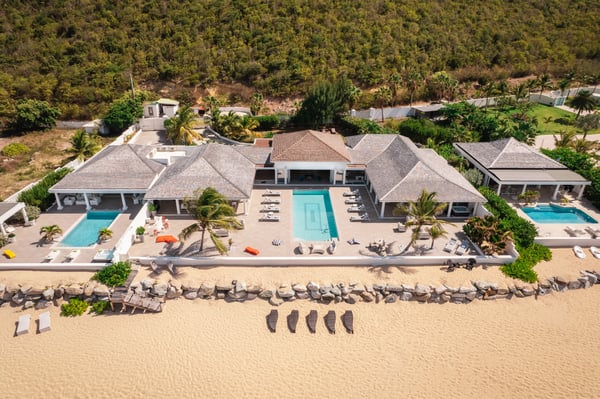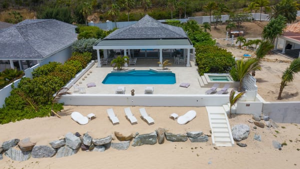 The Villa La Perla Estate in St. Martin is a stunning masterpiece of luxury and elegance, situated along the picturesque Baie Rouge Beach. Comprising three distinct properties, it offers unparalleled beauty and a wealth of world-class amenities. Designed by Lulu by YSL, the interiors are a blend of style and sophistication, complemented by expansive gardens and outdoor living spaces. With a total of seven bedrooms, the estate provides ample space for guests to indulge in comfort and relaxation. The La Perla Palais, with its five bedrooms and shared living spaces, serves as the focal point, flanked by the charming one-bedroom properties, La Perla Bianca and La Perla Classic. The main villa boasts impressive features, including private gardens, an oversized pool terrace facing the beach, and spacious covered terraces for al fresco dining and outdoor lounging. The gourmet kitchen is equipped with top-of-the-line appliances and offers breathtaking views, while additional amenities such as a fitness center, media room, and spa area ensure a truly luxurious experience. Each of the smaller villas provides guests with private pools, terraces, and stylish furnishings, along with modern amenities such as Jacuzzi tubs and open-air floor plans. Expansive yet welcoming, the Villa La Perla Estate is an ideal choice for those seeking a luxurious retreat for a special event or unforgettable holiday in St. Martin.