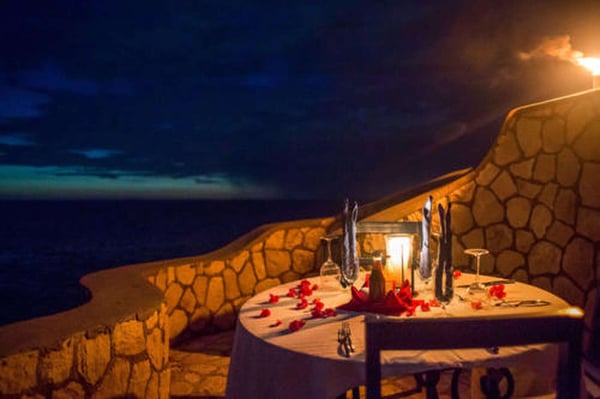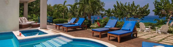 Little Waters on the Cliff is an exclusive private villa nestled on the cliffside at the westernmost point in Jamaica allowing guests to have an uninterrupted view of the setting sun. The house is architecturally designed to offer visitors a secluded, tranquil environment in which to relax and unwind from day to day stresses. Exploration along the cliffside reveals two subterranean caves, the larger of which has its own natural sea-water pool. Sit in this cave, hear the waves pounding on the rocks below, and forget all life’s worries. The smaller cave has an inset stone bench; the perfect retreat to sit with a glass of wine and watch the setting sun or, if you are lucky, the dolphins at play. Sequestered on one acre of landscaped gardens this three bedroom villa offers stunning views of the ocean from virtually every window – even the bathrooms. Little Waters on the Cliff is for the discerning and sophisticated. The décor features an uncluttered style, showcasing the best of Balinese craftsmanship. The living room has a stunning wall of 10-foot glass that opens onto a patio overlooking the sparkling azure Caribbean. A separate formal dining room opens onto the pool deck and also has direct views out to sea. The upstairs primary bedroom features a king size four poster bamboo bed, and polished bamboo flooring, with three glass walls that open up to a wrap-around balcony and the ocean. The bathroom has a whirlpool tub that overlooks the sea, a separate rainfall shower, and double countertop basins. The second upstairs bedroom showcases a king-size bed handmade from Bali with a bed inlaid with coconut shell. The glass doors open onto a private balcony. The bathroom has a cradled tub situated in front of a large picture window providing an uninterrupted view of the ocean. There are separate showers and double-counter top basins. The ground floor bedroom has optional king-size or twin beds handmade in Bali and the bathroom features a walk-in “rainforest” shower which can allow direct access for a wheelchair.