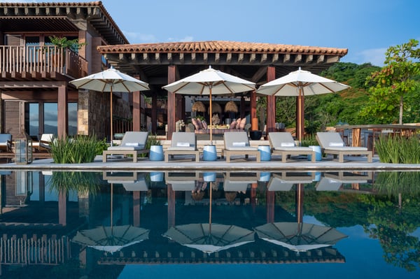 The Premier Golf Membership grants access to Pacifico Golf Course ($), Bahia Golf Course ($), the Tennis Centre ($), the Fitness Center ($), El Surf Club based on min. consumption fee ($), St.Regis Beach Club based on availability and min. consumption fee ($), Pacifico Beach Club, Sufí Ocean Club and Kupuri Beach Club. Contact our Villa Specialists for more information. El Milagro Diario is a breathtaking 15,000-square-foot private beachfront luxury resort, designed and built with privacy, recreation, and relaxation in mind. Perched over a secluded beach in Punta Mita, this elegant property is bordered by running creeks, a tropical forest, and a reef perfect for snorkeling. Aesthetically immaculate interiors fuse contemporary refinement and Southeast Asian exoticism. Comprised of multiple pavilions conjoined by enchanting footpaths, Villa El Milagro Diario presents a bold vision of indoor-outdoor tropical living. Sleek lines and crisp vertices sculpt glorious open-concept spaces scintillating with youthful vibrance and holiday excitement. Varnished exotic timbers are on full display, with rich hues garnished with exquisite ceramics, figurines, and globetrotting decor. This technology-forward Punta Mita vacation rental delivers cutting-edge 21st-century comforts with private SONOS systems and state-of-the-art televisions