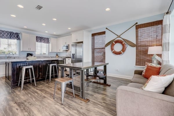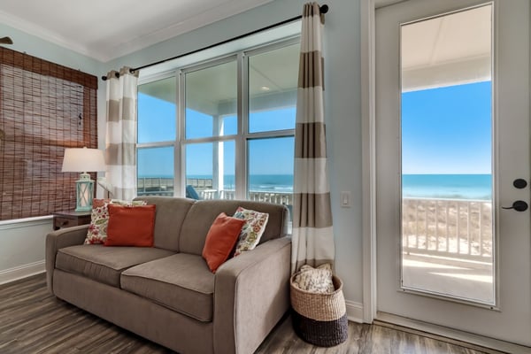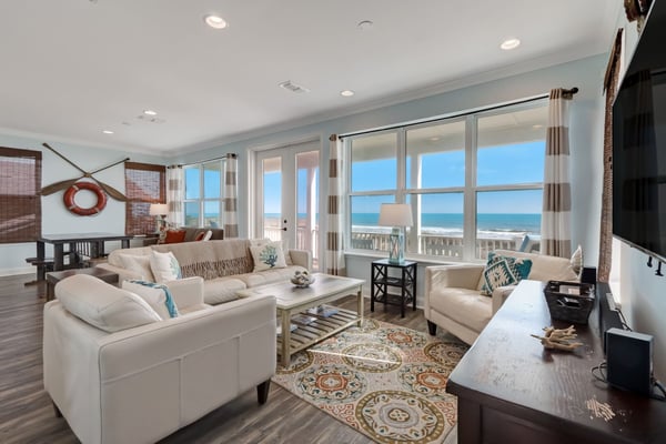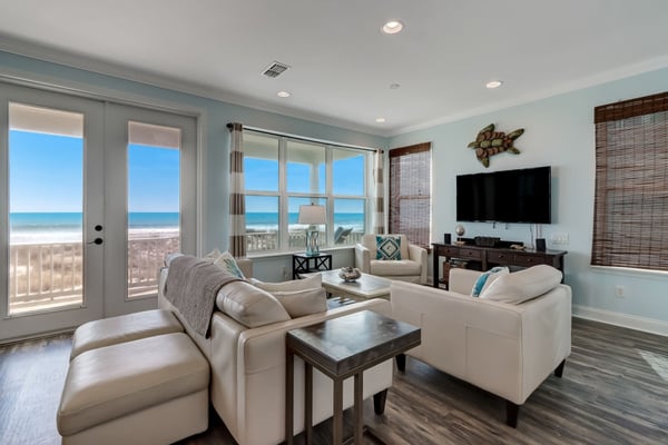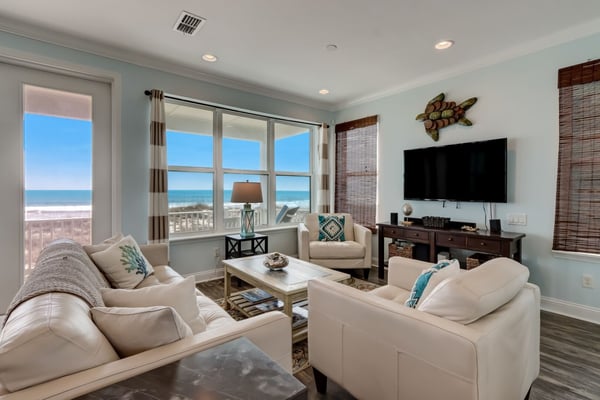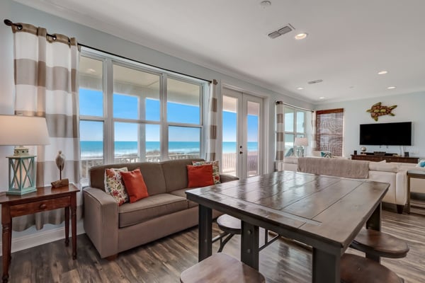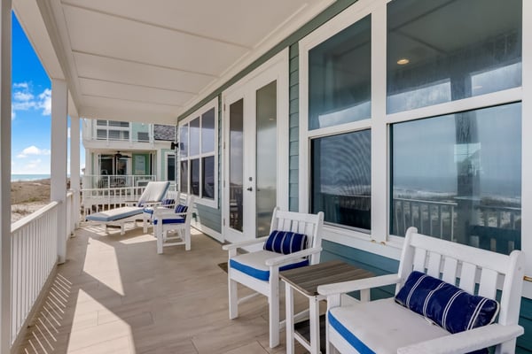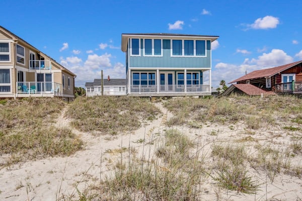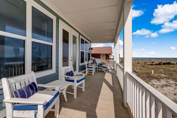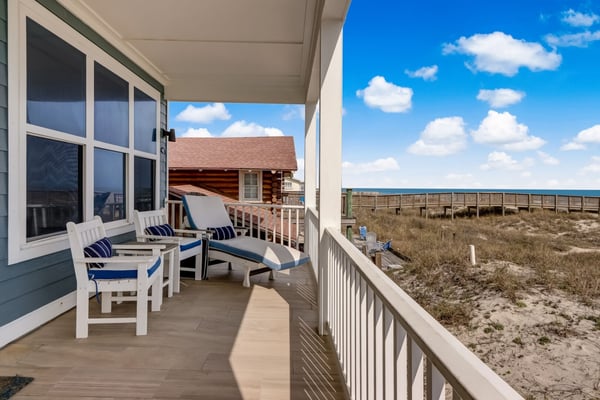 This magnificent 1800 square feet beach house has views beyond your imagination! Every room in the house offers a tremendous opportunity to view the beautiful Atlantic through an expanse of large windows. Home has modern décor and has been tastefully appointed with many upgrades, such as stainless steel appliances, granite countertops, hardwood floors, amazing tiled floor-to-ceiling showers, and so much more. Nestled in the dunes, this three-bedroom, two-and-a-half-bath bath newly built home has an open floor plan, is beautifully decorated, and lives very comfortably.