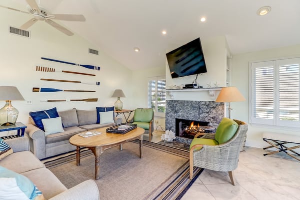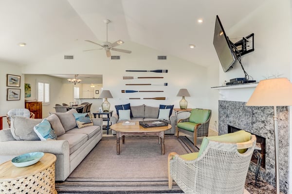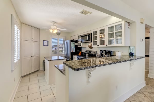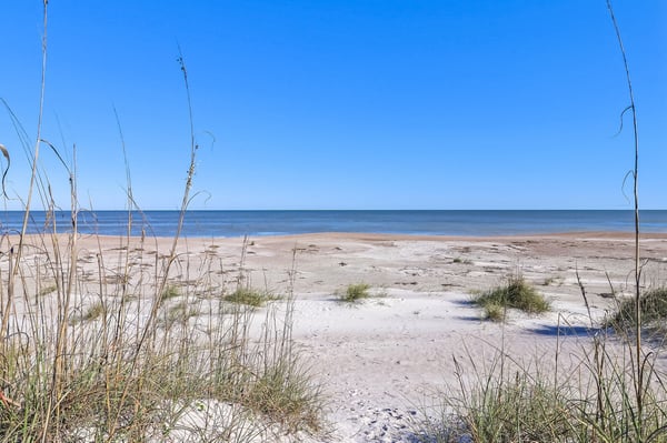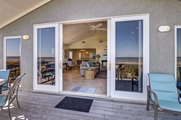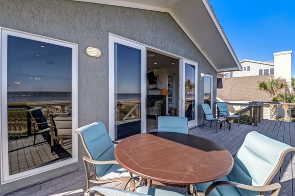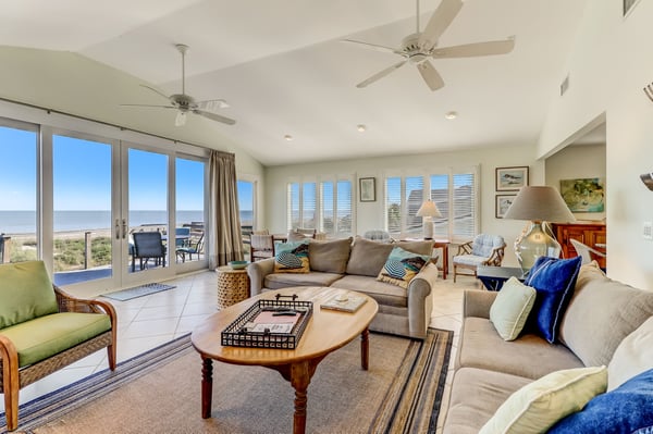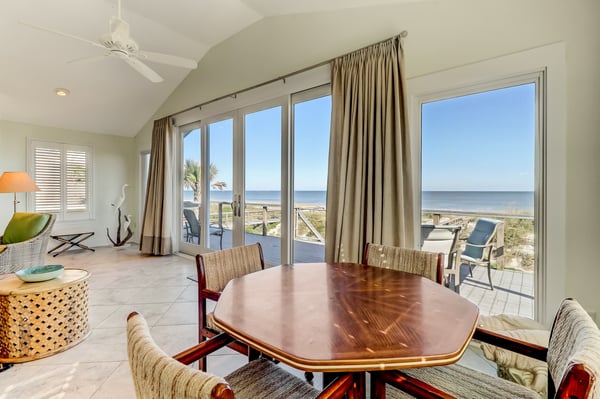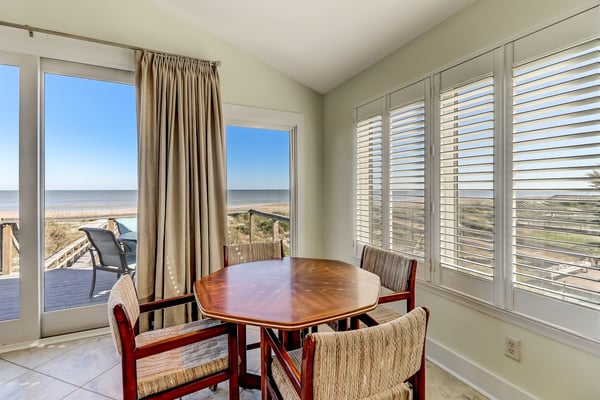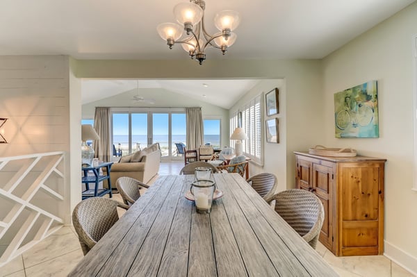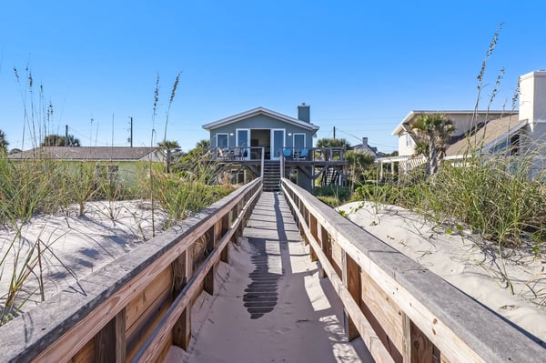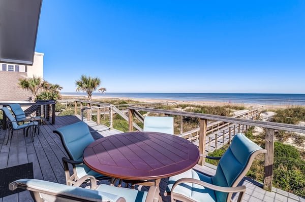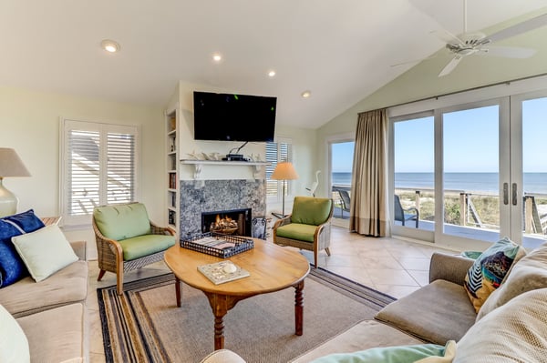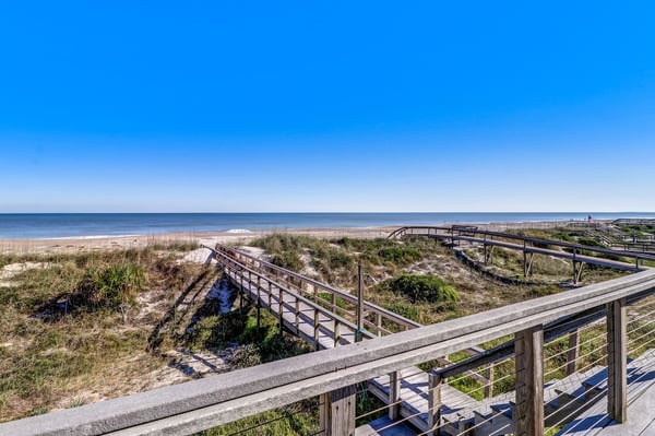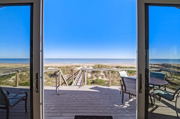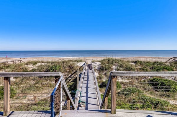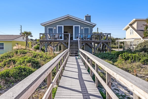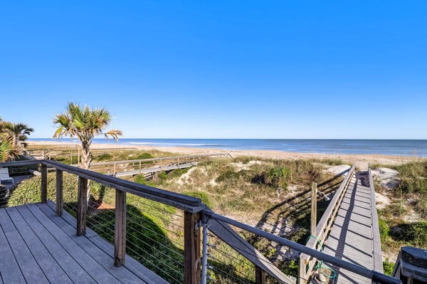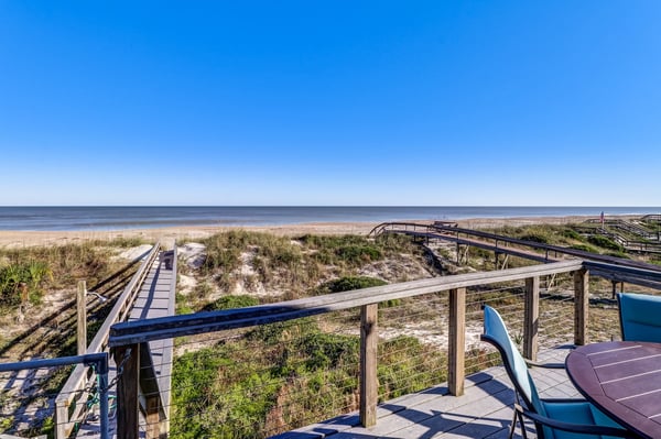 This two-story, four-bedroom, three-bath house is located right on the beach. The open kitchen with modern stainless steel appliances, a large Island kitchen, marble countertops, and a ceiling fan to make meal preparation a breeze. The spacious living area is light and airy and sports a ceiling fan, double glass doors and windows across the entire length of this home to the generously proportioned rear oceanfront deck for a magnificent ocean view! Nestled in the Serene Beauty of Amelia Island, this home is sure to please the entire family. Two bedrooms are located on the lower level & two are located on the main level. Linens are provided for you; you only need to bring a beach towel.