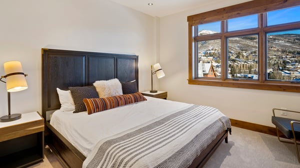 Ski Butlers offers you the best rental experience in the industry. No more lines. Ski Butlers is a full-service ski and snowboard company that delivers the equipment to you. Contact a villa specialist for more information. The Sugar Loaf Mountain residence at One Steamboat Place offers unrivalled slopeside access at the base of the mountain. With beautiful new upgrades throughout, you will feel right at home after you return from a day on the mountain. The residence features a large living area with mountain and valley views. Its open floor plan creates a spacious, free-flowing living, dining, and kitchen area. Beautifully furnished and decorated throughout, this living area includes a gas fireplace, flat screen TV and comfortable couches for relaxing after a day on the mountain. Aspiring chefs will delight in the professionally equipped kitchen with Viking appliances. There is also a built-in Viking gas grill on the deck. The primary bedroom has modern and stylish furnishings, plus a gas fireplace and an ensuite bath with a steam shower and a Jacuzzi tub. The guest bedroom suite has a king bed with a private bath. A third bedroom has a king bed and an attached bathroom. The fourth bedroom offers two sets of twin-over-full bunks with fun wallpaper. This residence offers a separate office room with high-speed internet for remote working. Guests also have use of a washer and dryer on site in the hallway. A service fee will apply to all guests over the age of 10, paid directly to One Steamboat Place upon checkout. Fee is subject to change. Enjoy all the resort's signature touches throughout One Steamboat Place, including exquisite gathering areas and one of the most beautiful day spas in the West. One Steamboat Place also has a state-of-the-art fitness facility, motion studio, pool and hot tubs, family game room including a new Skee-ball machine, and a Little Tykes playroom for the younger kids. With complimentary continental breakfast and après ski, ski valet and on-call local shuttle, the private residences at One Steamboat Place have defined the first-class experience in Steamboat. This home enjoys air conditioning in summer. 2,535 sq. ft.