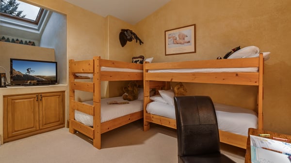 Ski Butlers offers you the best rental experience in the industry. No more lines. Ski Butlers is a full-service ski and snowboard company that delivers the equipment to you. Contact a villa specialist for more information. Sleek, mountain decor graces every room in this beautiful Arrowhead residence. Entertaining is easy with a gourmet kitchen, a dining area with seating for six, a spacious great room with a gas fireplace, and a private patio with a gas grill. From the main entrance of the home or the attached 2-car garage, you'll enter the kitchen with granite countertops, wine fridge and breakfast bar seating for four. Just beyond the kitchen is the dining area with seating for six and a great room with a flat-screen TV, gas fireplace and large leather wrap-around sofa. Also on this level are three bedrooms, including the primary suite with a king bed, flat-screen TV, patio access, as well as its own en suite bath with Jacuzzi tub and walk-in shower. The second bedroom on this level has a queen bed with a flat-screen TV and en suite bath with a walk-in shower. The third bedroom also has a queen bed and flat-screen TV and uses the bathroom just down the hall with a shower-tub combo. The upper level has a reading nook on the landing that overlooks the great room, as well as the fourth bedroom perfect for kids. This bedroom has two sets of twin bunks, a flat-screen TV, a walk-in closet, and en suite bath with a walk-in shower. Guests may enjoy the community pool and hot tub at the Alpine Club, just a half mile away. This home has WIFI and comes fully stocked with paper products (paper towels, toilet paper, tissues), bathroom toiletries (shampoo, conditioner, body wash, hand soap), and detergents (dish, dishwasher, and laundry) as well as clean bed linens and towels. In addition, the kitchens are stocked with aluminum foil, plastic wrap, trash bags, sponges, soap, salt and pepper, coffee, tea, Nespresso, cookware, bakeware, dishes, glasses, utensils, and standard small appliances. This home does not have air conditioning. Colorado's cool summer nights will keep this home comfortable by opening windows after the sun goes down, and then closing the windows and blinds during the day. Utilizing the overhead fans, if available, keeps airflow moving, and additional floor fans can be found in many bedroom closets. Can't live without it? A/C units may be available for rent for an additional fee. 2,208 sq. ft. STR-284