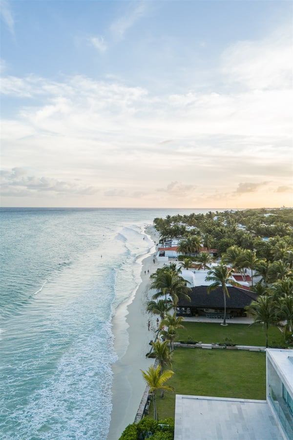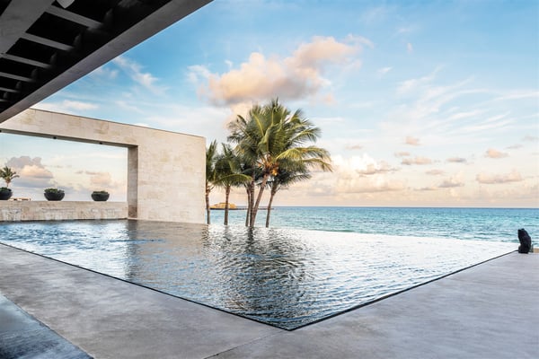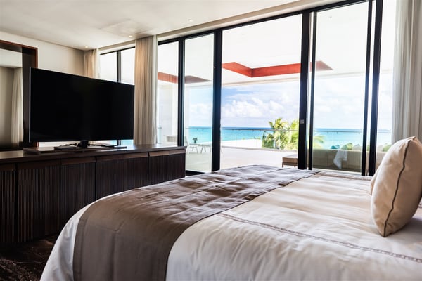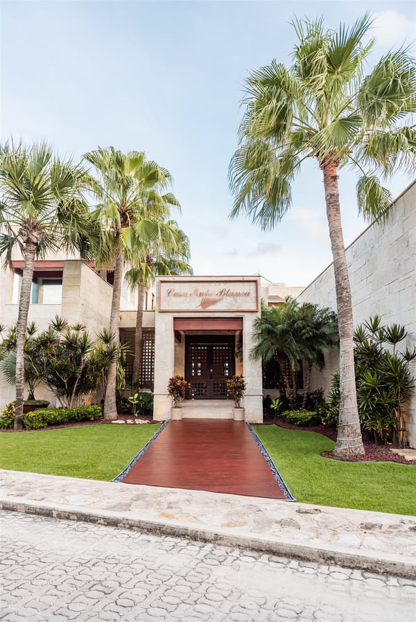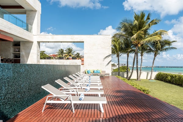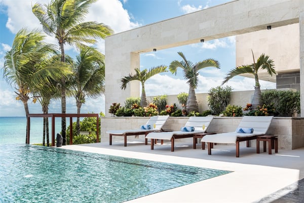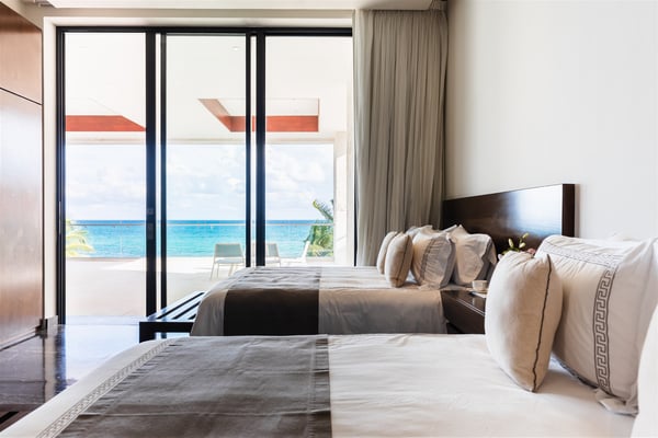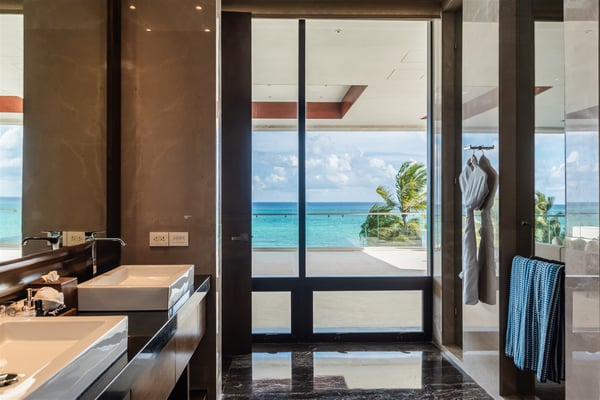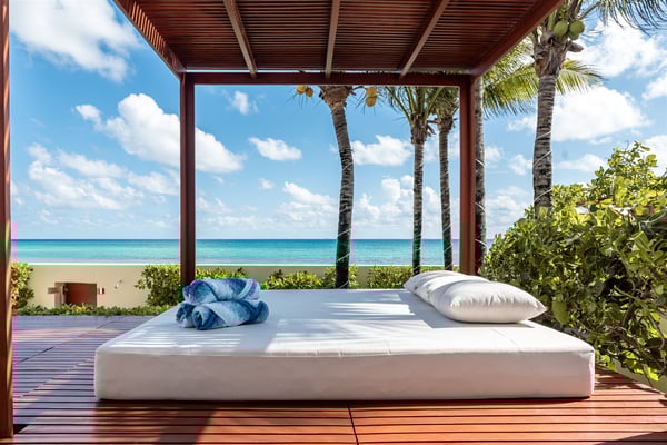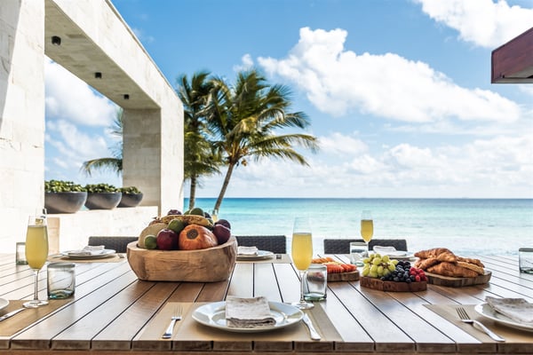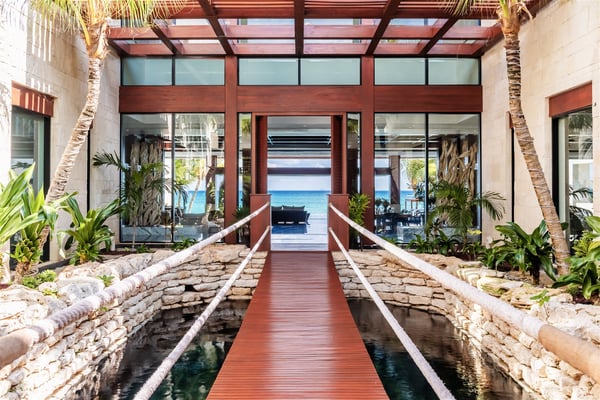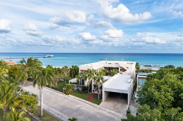 Spectacular aquamarine ocean, blue sky and white fluffy cloud vistas await you at Casa Nube Blanca. This uber luxurious fully staffed beach home is located on sandy shores in the exclusive Playacar Phase 1. Enter Casa Nube Blanca across a wooden bridge above the cenote-inspired water feature and tropical palms entrance. Here, you will receive a warm welcome by your butler and villa host, cool lemonade and cocktails with a twist will refresh you. The expansive contemporary open-plan living room, dining, and fully equipped gourmet kitchen offers unparalleled views. Step from here onto the villa's huge covered terrace with outdoor dining and living. Enjoy blissful sun-soaked days lounging poolside, step onto soft white sand and enjoy floating in the warm Mexican Caribbean ocean. The villa features six luxurious suites that you will sink into…. the main suite has a connecting studio/office), and there is ample space for relaxation and privacy. The two oceanfront suites with gorgeous ocean views lead to the villa's huge terrace… enjoy morning yoga with the sunrise, chillaxing and sunsets pre-dinner aperitifs with incredible vistas! Just a few steps from the Famous 5th Avenue, you have many restaurants, boutiques, cafes, bars and hip nightlife. Golf and tennis are close by. Along the coast, you have many places of outstanding beauty, beaches, cenotes, eco-parks, World-class scuba diving, the Mayan ruins and much more. For an extraordinary vacation experience, choose Casa Nube Blanca.