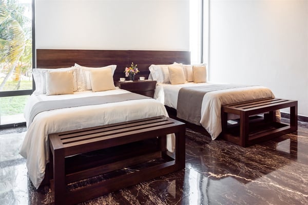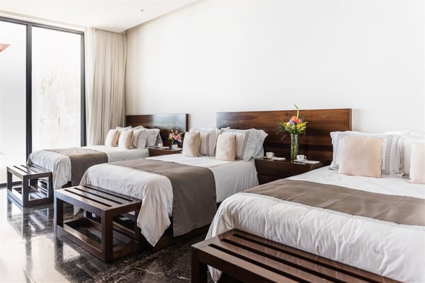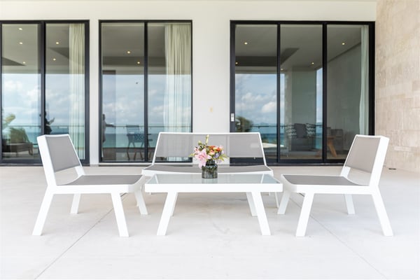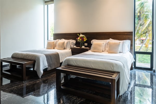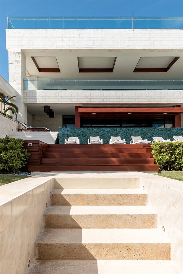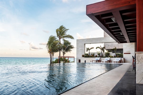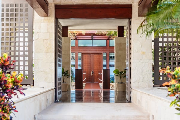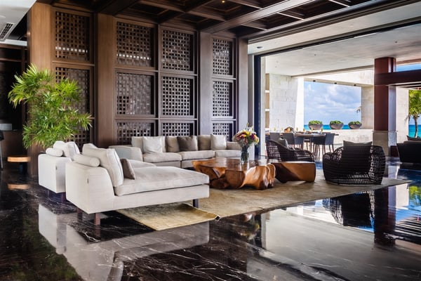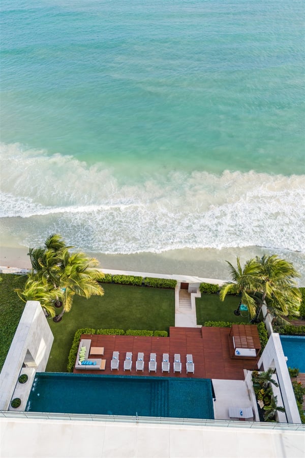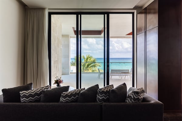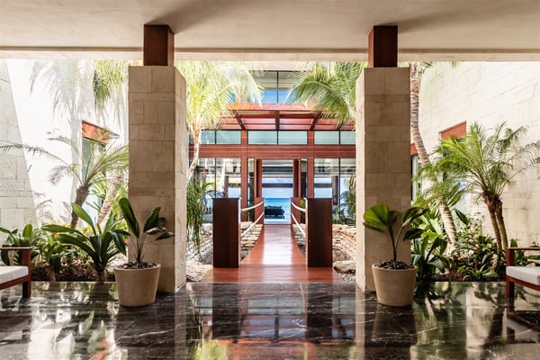 Spectacular aquamarine ocean, blue sky and white fluffy cloud vistas await you at Casa Nube Blanca. This uber luxurious fully staffed beach home is located on sandy shores in the exclusive Playacar Phase 1. Enter Casa Nube Blanca across a wooden bridge above the cenote-inspired water feature and tropical palms entrance. Here, you will receive a warm welcome by your butler and villa host, cool lemonade and cocktails with a twist will refresh you. The expansive contemporary open-plan living room, dining, and fully equipped gourmet kitchen offers unparalleled views. Step from here onto the villa's huge covered terrace with outdoor dining and living. Enjoy blissful sun-soaked days lounging poolside, step onto soft white sand and enjoy floating in the warm Mexican Caribbean ocean. The villa features six luxurious suites that you will sink into…. the main suite has a connecting studio/office), and there is ample space for relaxation and privacy. The two oceanfront suites with gorgeous ocean views lead to the villa's huge terrace… enjoy morning yoga with the sunrise, chillaxing and sunsets pre-dinner aperitifs with incredible vistas! Just a few steps from the Famous 5th Avenue, you have many restaurants, boutiques, cafes, bars and hip nightlife. Golf and tennis are close by. Along the coast, you have many places of outstanding beauty, beaches, cenotes, eco-parks, World-class scuba diving, the Mayan ruins and much more. For an extraordinary vacation experience, choose Casa Nube Blanca.