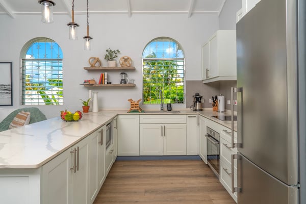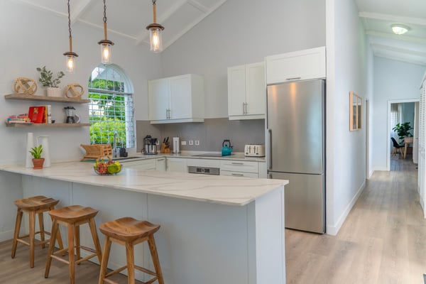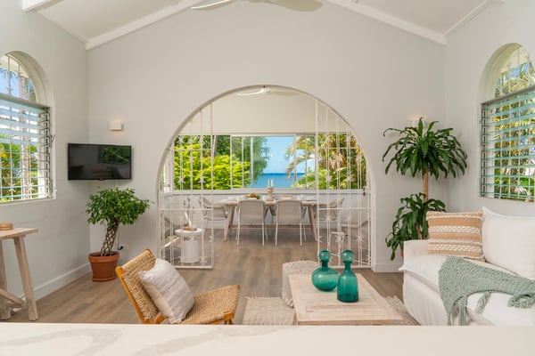 Welcome to Secret Cove 2, a charming two-bedroom beachfront condo situated in the tranquil Derricks area of St. James, Barbados. Tucked away in a secluded complex, Secret Cove 2 presents a truly enchanting backdrop with breathtaking views of the picturesque bay, a highly coveted spot on the island’s West Coast. This private haven comprises four units spread across two buildings, embraced by vibrant tropical gardens and granting direct entry to one of Barbados’ most pristine beaches. Freshly renovated and revamped in January 2023, this stunning condo offers a warm and inviting atmosphere for families and friends embarking on a journey together. Step inside and be captivated by the soaring ceilings and the seamless flow of the open-concept design, guiding you towards a charming covered patio that boasts uninterrupted vistas of the majestic ocean. Indulge in the luxury of air-conditioned bedrooms, thoughtfully adorned with generous storage space, guaranteeing a cozy and hassle-free experience throughout your stay. Secret Cove 2 offers its esteemed guests the pleasure of indulging in culinary delights within its cutting-edge kitchen or relishing meals on the breezy patio, serenaded by the rhythmic melody of waves caressing the shore. Moreover, an enchanting gazebo awaits at the foot of the beach stairs, beckoning visitors to unwind with a rejuvenating sundowner before embarking on an evening of delectable dining. Indulge in an unforgettable culinary adventure at the prestigious Cliff restaurant, a mere stone’s throw away, beckoning with its unparalleled gastronomic delights. For those seeking more culinary exploration, venture a short drive away to discover other beloved local dining gems. Alternatively, immerse yourself in the vibrant atmosphere of the Lime Grove Lifestyle Center, a shopper’s paradise brimming with duty-free treasures and a plethora of tantalizing dining choices. Whether you’re a thrill-seeking group of friends, love-struck honeymooners, or simply craving a serene escape, this hidden gem is your ultimate paradise. Immerse yourself in the breathtaking beauty that envelops this haven, where relaxation and rejuvenation reign supreme.