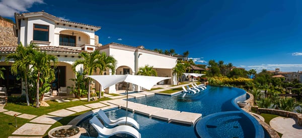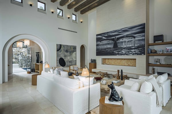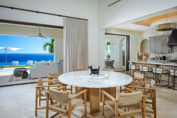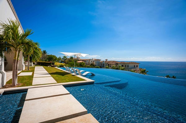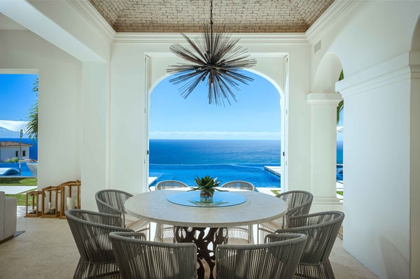 Dramatically perched on the hills overlooking the Sea of Cortez, Casa Catrina evokes a sense of limitless sophistication, with a seemingly endless supply of private amenities and nearby luxuries. Dramatic coastline views give way to a luxury lifestyle by the ocean, as this Los Cabos villa provides the ultimate resort experience. With breathtaking views overlooking the Sea of Cortez from sunrise to sunset, this six-bedroom, seven-bath home delivers the perfect balance of dignified elegance and refined appeal for up to 12 guests. The striking uniqueness and grandeur of the home is evident from the moment guests glide over stone pavers and an almost spa-like water feature, through an arched doorway and directly to the ocean views beyond. The home's inspirational entry is surpassed only by its other outdoor space, including a true infinity pool that makes it virtually impossible to distinguish where the pool leaves off and the ocean begins. Relax in one of the four deck loungers right in the pool, take a dip in the Jacuzzi, or head down the stone steps to the firepit overlooking sweeping ocean views. A nicely landscaped outdoor pavilion brings in a fireplace and seating overlooking the rolling waves or choose to relax in a full outdoor living room and dining room with multiple places for sitting and lounging while enjoying direct water views. Back inside, soaring ceilings make way for contemporary fixtures and artwork, another fireplace, and hues of grey and blue that blend in perfectly with the distant ocean views. A gourmet kitchen island with extra seating accompanies a glass dining table with room for eight, while guests are also treated to the luxury of a wet bar, a wine fridge, a cozy tv room, a massive 100-inch cinema screen, and daily maid service. The refined splendor continues, as modern bedrooms open to outdoor patios and elegant baths. Gracefully carved out of the rolling hillside set between the desert and the sea, Palmilla boasts some of the region's most beautiful homes. The exceptional resort community of Villas del Mar offers a front row seat to virtually every luxury lifestyle opportunity in Los Cabos. Spend your afternoons at one of the finest swimmable beaches in the region, or out on the water snorkeling, scuba diving and sport fishing. This villa is also a short distance from the One & Only Palmilla luxury beach resort, with its own creative dining selections, spa services, and a nearby, award-winning golf course. PLEASE NOTE: The Palmilla Golf course will be transitioning to a fully private course as of January 2025 and will no longer be available to book without a membership.