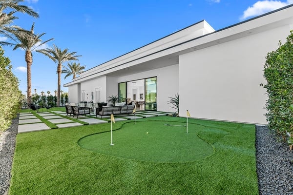 Nestled beside La Quinta and the exclusive, world-renowned Madison Club and Hideaway golf communities, this extraordinary vacation rental promises an unparalleled escape. It's truly unprecedented in the realm of luxury stays, located within a secure, gated enclave featuring a limited collection of just 16 exceptional residences. Your private oasis, Mirage Grande, boasts a massive custom swimming pool and spa, a cozy sunken fire pit, and its very own putting green for leisurely practice. Inside, you'll find six lavish bedrooms, each with its own private en-suite bathroom, ensuring ultimate comfort and privacy for every guest.