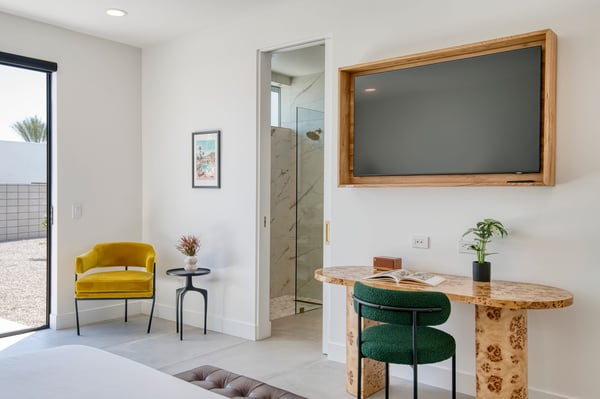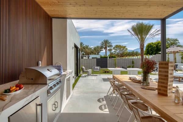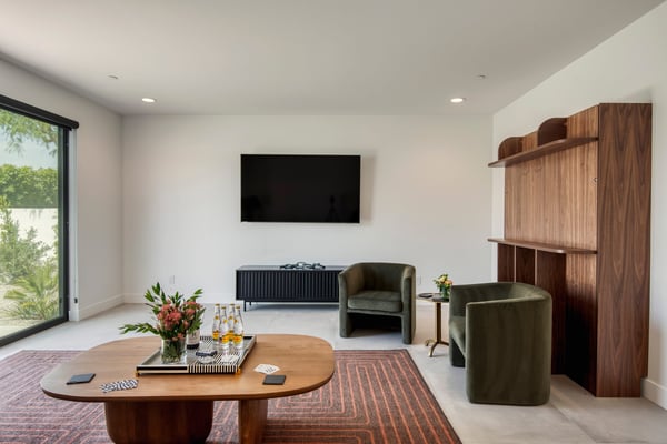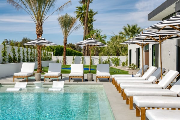 • Please be aware that during festivals like Coachella, although the Villas are within walking distance of the polo grounds, road closures and specific access points can extend the walking distance to the festival entrance to approximately 1.4 miles. While some guests choose to walk and walking is possible, we strongly recommend purchasing golf cart services for easier access. • This home allows pets for a fee. Any undisclosed pets brought in without approval will result in a $500 fine per pet. Please note that the backyard gates are wide enough for a small dog to get through, so we recommend supervising pets when outdoors. • Pool heat is available at this home at an extra cost and needs to be requested at least 48 hours before your stay. Spa Heat is complimentary for guests. Pool heat is not available between May 1st and October 1st. • Our desert pools are heated to a maximum temperature of 86 degrees. Please note that we do not exceed this temperature for pool heating. • 2 twin rollaway beds with pillows and bedding can be provided upon request and are included as part of your nightly rate. • The Murphy bed available in our Media room can be prepared ahead of your arrival upon request. Once installed by our local team, the bed is not designed to be moved by guests. You won't be able to raise or lower the bed yourself during your stay. • Home is fully stocked with a coffee machine, coffee, laundry detergent, indoor and outdoor towels, kitchen cookware, Brita water filter, first-aid kit, hair dryers, and toiletries. • During the summer months, desert temperatures are extremely high, which may cause the pool temperature to rise as well. Unfortunately, there is nothing we can do to control this. • The garage accommodates 3 cars. The driveway accommodates 3 compact cars. • The rates for this property are dynamic and are constantly changing. The price listed above is only a starting rate and does not necessarily reflect the price for your travel dates. Please contact a Villa Specialist for exact pricing details.
