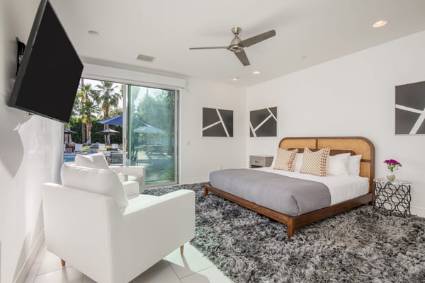 • The rates for this property are dynamic and are constantly changing. The price listed above is only a starting rate and does not necessarily reflect the price for your travel dates. Please contact a Villa Specialist for exact pricing details. • Please note that the photos may not be exactly accurate to the furnishings of this home, but the layout and amenities are similar and comparable. • Please be aware that during festivals like Coachella, although the Villas are within walking distance of the polo grounds, road closures and specific access points can extend the walking distance to the festival entrance to approximately 1.4 miles. While some guests choose to walk and walking is possible, we strongly recommend purchasing golf cart services for easier access. • Pets may be permitted upon request, at an additional fee. Please note that the backyard gates are wide enough for a small dog to get through, so we recommend supervising pets when outdoors. • Pool heat is available at this home at an extra cost and needs to be requested at least 48 hours before your stay (maximum temperature of 86). Spa Heat is complimentary for guests. • Pool heat is not available between May 1st and October 1st. • 2 twin rollaway beds with pillows and bedding can be provided upon request and are included as part of your nightly rate. • You must be at least 21 years old to book this property. • This is a smoke-free home. Violation of the no-smoking policy will result in a $500 fee for additional cleaning and other related costs, in addition to the Guest being responsible for any damages attributable to smoking beyond said fee. • Please be considerate of your neighbors and mindful of noise levels. Noise violations may result in fines. Please also note we do not provide speakers or sound systems.
