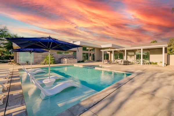 Featuring clean, modern lines and architecture, 16 foot vaulted ceilings, a VIP concierge service, in a gated community - this 5 bedroom, 5 bath home is a perfect escape. Situated on a half-acre lot, Arroyo Luxe features an expansive pool and spa area with an outdoor firepit, perfect for entertaining. For an additional fee, this home offers a private chef, pre-fridge stocking, and mid-stay cleans. Get ready for the trip of a lifetime at Arroyo Luxe! Walking into the villa you will find yourself drawn to the beautiful living area. Featuring a fireplace, big screen TV, and elevated furnishings, making this the ideal gathering place. This home features two master suites with en suite bathrooms and large walk in closets allowing you to comfortably unwind after a busy day. The remaining three bedrooms also offer ensuite bathrooms providing all guests with privacy. This luxurious and elegant home is the perfect place that you deserve to get away from it all. We report and prosecute all Credit Card Fraud. Permit Number 260-316