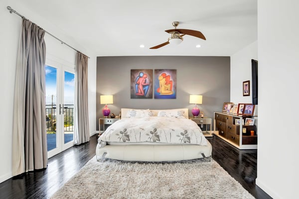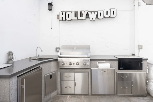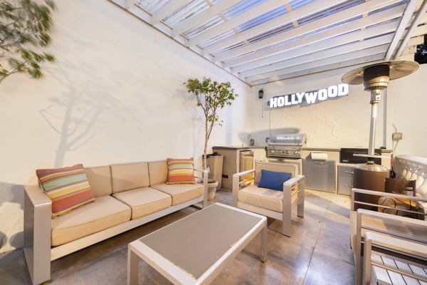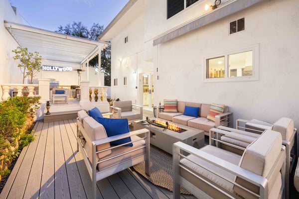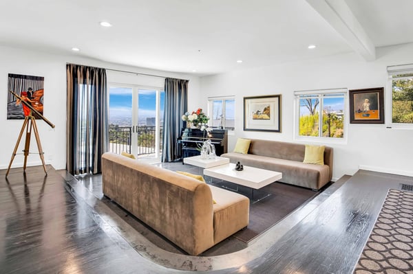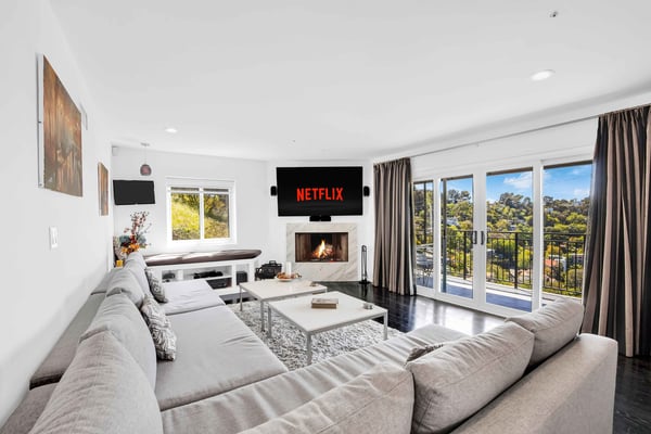 Enjoy this original artist’s home in Hollywood Hills, adorned with his own creative artwork and vibe in all rooms, with incredible sunset views of the Los Angeles city skyline. Large modern kitchen and dining area, family room, living room, and pool table room. Full outdoor kitchen, large outdoor living area with a fire pit. Feel inspired here with views of the ocean. Private gated driveway that fits up to four large vehicles. There are six HDTVs throughout the house with Apple and Amazon Firesticks. The pool table room is a separate room with a bar, HDTV, and speakers. Step into a two-story formal entry with gleaming walnut hardwood flooring, a step-down living room, and a custom glass staircase. On the main level, you will find a gourmet kitchen complete with classic Carrera marble counters and stainless steel appliances, as well as a beautiful formal dining room connected by a step-down living room filled with concrete flooring and glass doors opening to the balcony with amazing vistas of the Los Angeles skyline. Relax in the comfortable family room alongside a cozy fireplace and a second balcony providing breathtaking panoramic landscape views! We have an upright piano here, so you can sit and play songs while being inspired by the skyline views. The four-bedroom suites offer all the details of true luxury - walk-in closets, sitting areas with fireplaces, and spa-like baths. With an enchanting backyard that includes a grassy area, fountain, outdoor cabana lounge, and BBQ perfect for entertaining, you have the ultimate oasis. There is no place quite like LA. It's what people envision when dreaming about California. The entertainment industry has thrived in Hollywood for hundreds of years, calling people from all over the world. Surf lines the western coast of the city in areas like Venice, providing an area for locals and visitors alike to explore legendary beaches. Each of the 400+ neighborhoods in Los Angeles has its voice and story; there's something in it for everybody. Registration number HSR23-000710