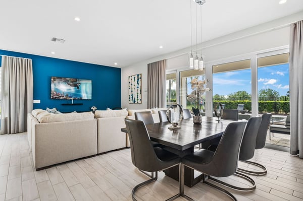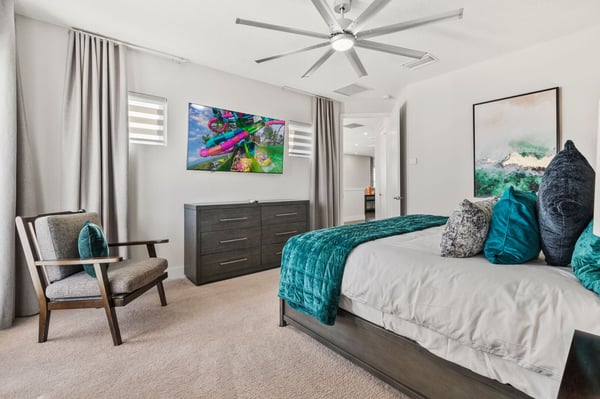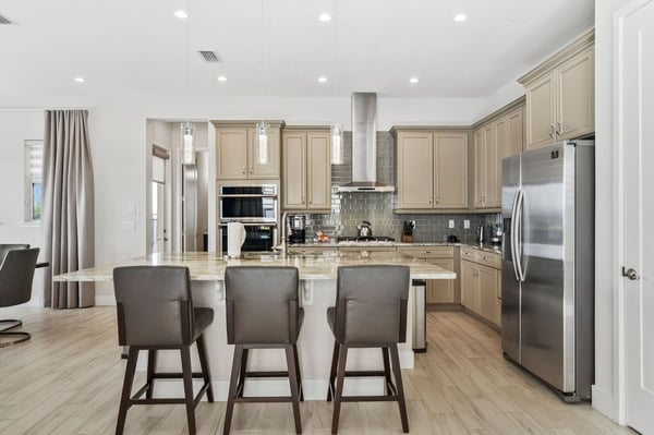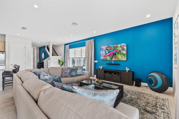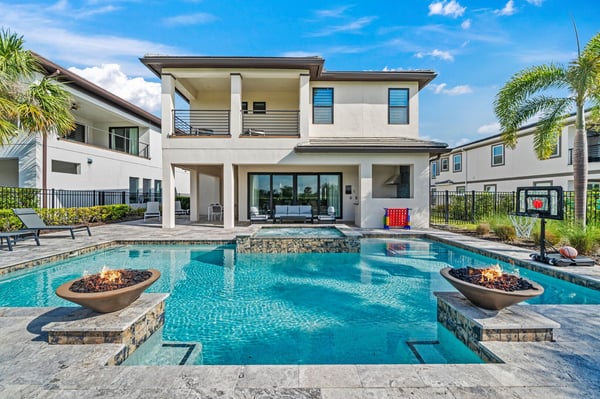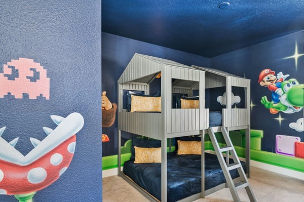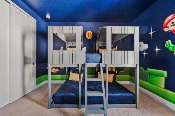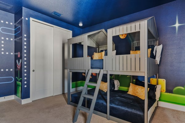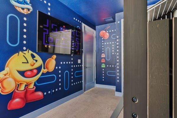 This stunning two-story vacation home has been newly decorated, offering a fresh and modern feel throughout. With four spacious bedrooms—three of which feature luxurious king-sized beds, and the fourth offering a fun Pac-Man themed room with two sets of bunk beds, each equipped with two full beds—there’s plenty of space and comfort for everyone. Each bedroom includes its own en-suite bathroom, plus an additional half bath, ensuring ample privacy and convenience for all guests. The newly updated, fully equipped kitchen is perfect for preparing meals, whether you're cooking a family feast or enjoying a casual snack. It boasts top-of-the-line appliances, ample counter space, and all the essentials to make meal prep a breeze. The large dining area is ideal for gathering with loved ones, offering plenty of seating for everyone to enjoy meals together. The private backyard oasis is another highlight, featuring a beautiful pool and spa, providing the perfect retreat after a day of adventure or relaxation. With breathtaking views of the golf course just beyond your backyard, you’ll enjoy a serene and picturesque setting. This home comfortably accommodates up to 10 guests, making it perfect for large families or groups. Whether you're lounging by the pool, enjoying the Pac-Man themed room, or exploring the nearby attractions, this vacation rental offers everything you need for an unforgettable stay.