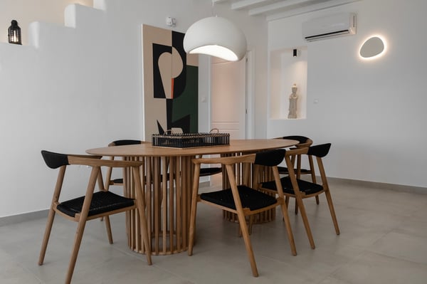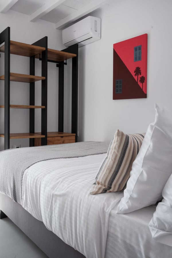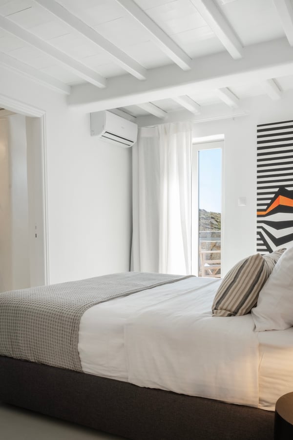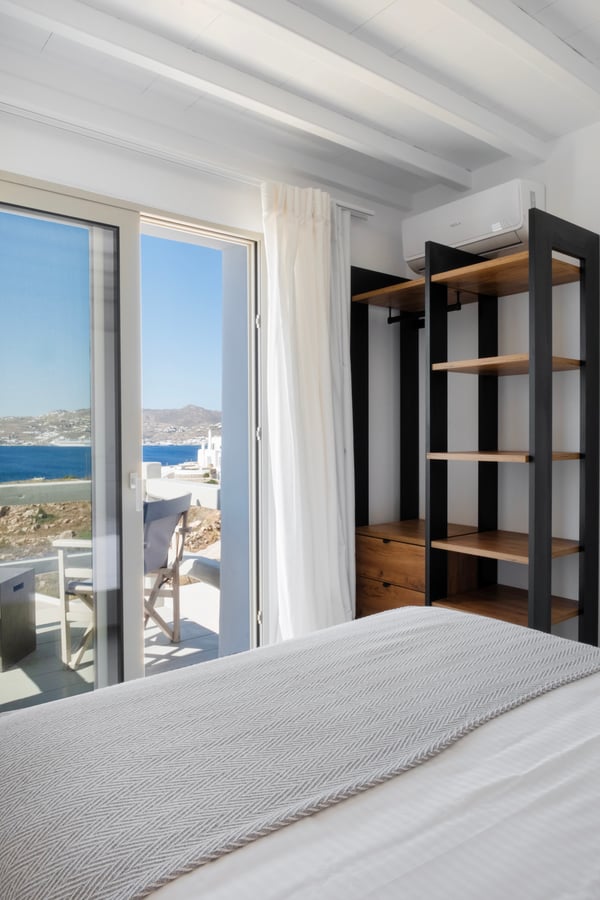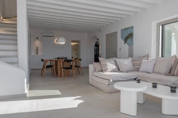 • Mykonos town: 5,3km • Mykonos Port:8,6km • Mykonos Airport: 5,5km • Nammos beach club: 5,1km • Scorpios beach club: 7,3km • Alemagou beach club: 11,3km • Closest beach: 2,5km (Ornos beach) • Closest market: 2,2km (AB Market Ornos)