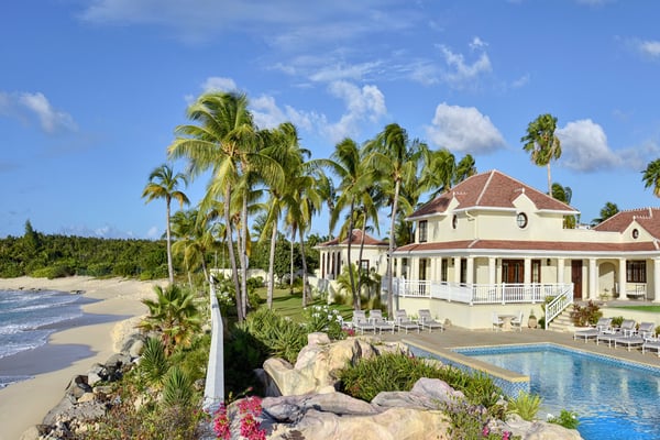 Villa Le Château des Palmiers is an extraordinary estate located in the Terres Basses area, right on the beach of Plum Bay in St Martin. This luxurious, private, and fully staffed property offers the ultimate beachfront luxury. The estate features six bedrooms, providing ample space for a large group or multiple families. In addition to the bedrooms, there is a media room, a living room, a dining room, a fully equipped kitchen, and even a ping pong table and kayaks for beachside enjoyment. On the garden side of the estate, you'll find four additional bedrooms, a chef's kitchen, a tennis court, and a gym. These facilities ensure that guests have access to a wide range of amenities for both relaxation and recreation. When staying at Villa Le Château des Palmiers, you can expect exceptional service. The rate includes daily chef service (three meals per day - cost of food & drinks additional) and concierge services. The dedicated staff will take care of your culinary needs, allowing you to savor delicious meals without any hassle. The concierge services will assist you with any additional requests or arrangements to make your stay truly unforgettable. Villa Le Château des Palmiers offers a state of mind for a luxurious and memorable vacation on the island of St Martin. Whether you choose to rent the property as a six-bedroom villa or a ten-bedroom villa, you can expect an unparalleled level of luxury, privacy, and comfort during your stay. Experience the epitome of beachfront luxury at Villa Le Château des Palmiers.