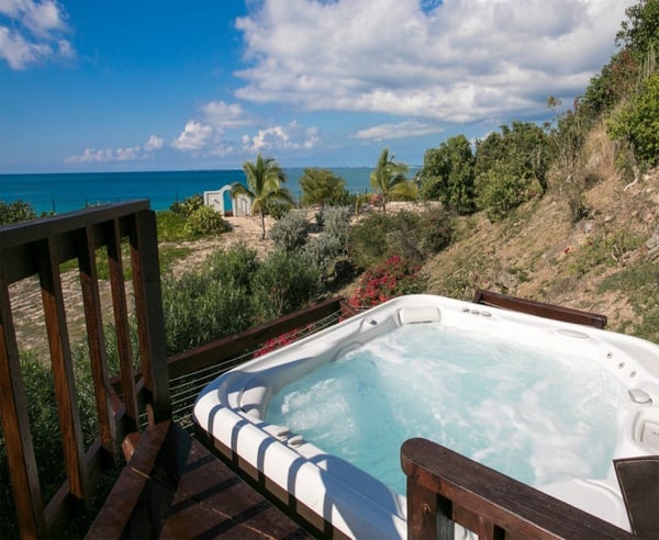 Villa Joie de Vivre is located directly on Baie Rouge beach, one of the most prestigious and serene beaches in French Saint Martin. This exceptionally private villa overlooks four secure acres surrounded by tropical gardens and endless breathtaking views of the ocean. Villa Joie de Vivre is a fully air-conditioned, multi-level villa that has been completely refurbished inside and out for 2024 with a modern coastal aesthetic to complement its Mediterranean architecture. The main living area is comprised of an open-plan living and dining area with a fully-equipped kitchen featuring stainless steel appliances, a gas range, a wine fridge, and a coffee/espresso bar. Step outside to enjoy one of the three covered gazebos for alfresco dining or lounging on one of the multiple plush seating options while enjoying scenic views at every turn of the Caribbean Sea and Anguilla. Ideal for a group of friends or family, you are sure to be happy with whichever of the king-size bedrooms you select. Each has a balcony, walk-in closets, safes, and their own en suite bathrooms with double vanities and oversized showers. Wake up refreshed in the villa’s Heavenly® Beds complete with luxurious linens and pillows. One bedroom also features a sleeper sofa and two rooms have desks. All bedrooms and bathrooms have 110v/220v 60Hz outlets with USB connections. Renovated in 2025, the newly added fourth bedroom is a beautifully remodelled 500-square-foot cottage, located just 150 yards from the main house. This standalone guest house has been completely transformed in the same contemporary style as the villa. Inside, you'll find a queen-size bed, an en-suite bathroom, a kitchen equipped with modern appliances, and a cozy living room with a sofa bed—ideal for a couple and a small child. Adding to its charm, the front porch offers stunning ocean views, while the back sundeck overlooks the tranquil waters of Simpson Bay, creating the perfect setting to relax and unwind. One of the main attractions of Villa Joie de Vivre is its direct access to the very peaceful and secluded Baie Rouge beach. The villa is perfect for those who want to be right on the beach while maintaining their privacy. Guests can snorkel in the calm waters or sunbathe on the provided chaise lounges, then slip back through their private locked gate to relax in the hot tub. The property’s other centerpiece is the pool deck with its 18’ x 35’ heated saltwater pool, lined by double sunbeds, a shaded gazebo lounge, BBQ area with a fridge and bathroom. Guests can stay connected with the Villa Joie de Vivre’s interior and exterior high-speed wireless internet, relax to music via the zoned Sonos speaker system throughout, or binge their favorite show on smart TVs provided in the kitchen, living room, and all bedrooms. Unwind by playing one of the well stocked board games or singing a favorite song on the portable karaoke machine. Baby monitors and an AED defibrillator are also located onsite. There are many ways to experience the “joy of living” at Villa Joie de Vivre. Skip the airport or ferry and have a helicopter pick you up directly in the backyard to fly you within minutes to St. Barths for lunch or Anguilla for a round of golf. The expansive grounds make it an ideal setting to accommodate a glamorous wedding reception after you walk down the aisle on the beach. Or perhaps you are a land-lover seeking a break from a boat charter, where you can easily tender back and forth from your yacht via the beach.
