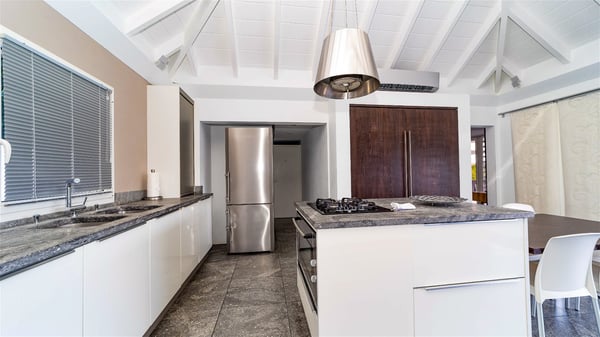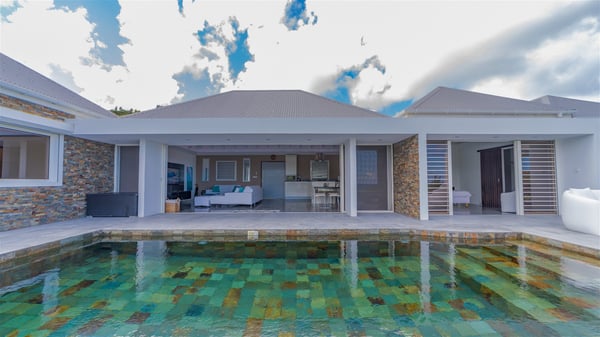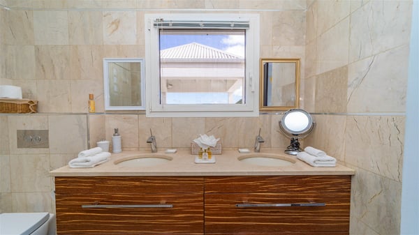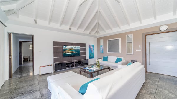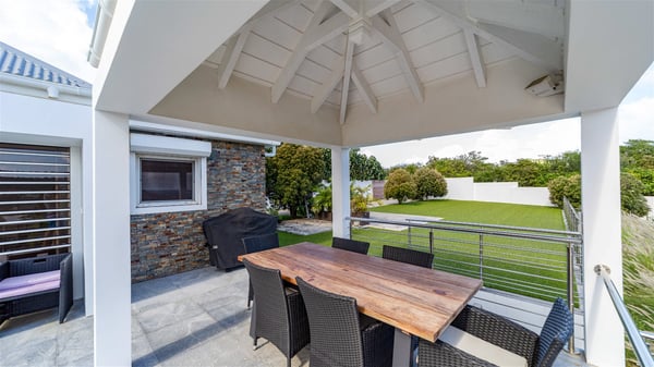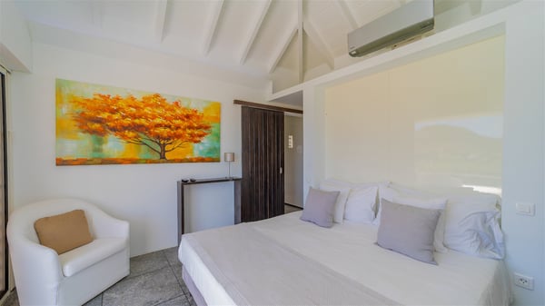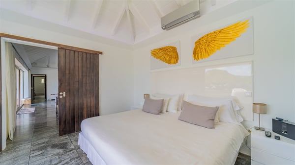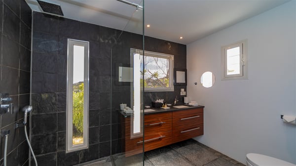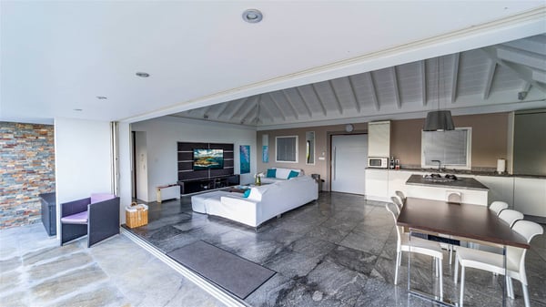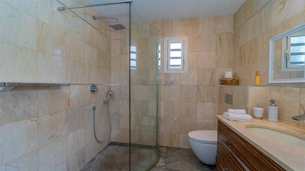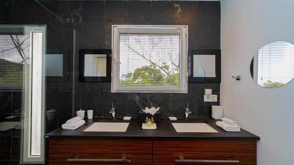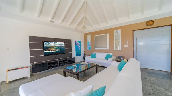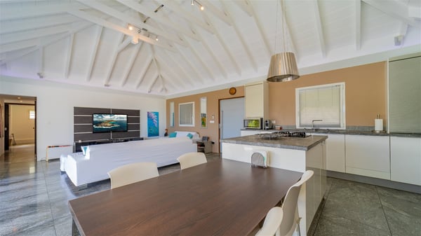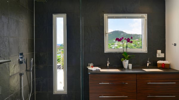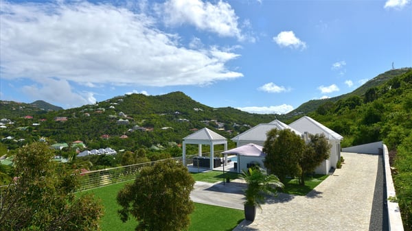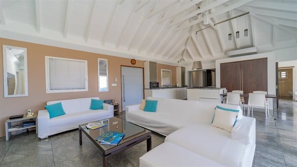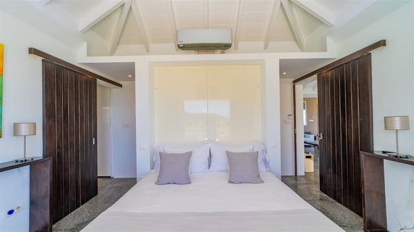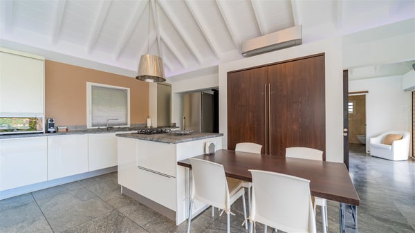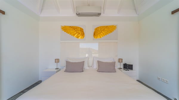 Located in Saint Jean, nestled on a hillside, Aya offers an amazing view over the bay and the deep blue ocean. Close to the beaches and shops, this charming two-bedroom vacation home is the ideal place for a fantastic stay in the Caribbean with family or friends. The comfortable and bright living room of Aya opens onto the terrace through large windows that let the view over the ocean and the surrounding nature shine through. Comfy sofas and benches are around a coffee table perfect for relaxing moments reading a book or talking over a coffee. In the extension, there is a beautiful, well-equipped kitchen coming with a welcoming dining space for four people. It overlooks the terrace in the mild air that sweeps the island of St Barths: in this soft and very quiet atmosphere, you and your guests will enjoy dining, resting and relaxing. Take a few steps outside, and you'll marvel at the incredible charm of the terrace extending over the width of the house. A sumptuous tiled infinity swimming pool opens onto the breathtakingly beautiful panorama. Sun loungers and outdoor furniture covered with soft cushions are set up for pleasant moments admiring the beauty of the island and enjoying the gentle trade winds. You'll love dining under the gazebo around the table that seats up to eight guests, in an idyllic scenery of lush vegetation while the deep blue ocean seemingly blends with the sky. Aya welcomes two couples going on vacation together, or a family. It is composed of two comfortable and very cozy bedrooms. Each one opens onto a beautiful view over the environment and the ocean. The two bedrooms have king beds and adjoining bathrooms with rain showers. You can access the terrace from the large bay windows of the bedrooms. The warm comfort and the soothing decoration of the night space creates an enjoyable and soft atmosphere. In a most idyllic tropical environment, Aya is the perfect place for a fantastic stay with family or friends in St Barths, the pearl of the Caribbean.