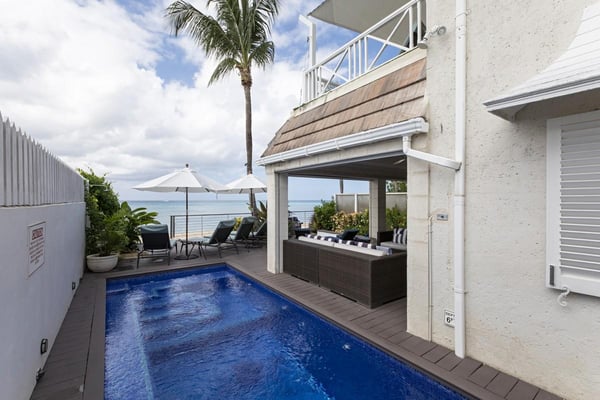 Radwood Beach Villa 1 is located along the shores of one of Barbados’ most secluded, serene and tranquil beaches. Situated off-road with the gated entrance being shared with the townhouse next door, this ocean front villa is far away from all noise and commotion, offering complete tranquility and privacy for guests. The layout has been carefully designed and constructed to ensure guests can enjoy the property’s location and spectacular sea views throughout the day. The villa has three bedrooms each with luxurious ensuite bathrooms and uninterrupted views of the surrounding scenery. The master suite has its own private oceanfront terrace where guests can relax in the morning with breakfast or at night with a glass of wine at night, while gazing at the ocean. There is a well-equipped kitchen, a dining room and guests can enjoy either indoor dining or they can choose to dine alfresco on the covered terrace. The living area flows seamlessly towards the ocean through large folding glass doors which open onto the covered terrace leading to the private plunge pool. A winding path leads through the villa’s manicured gardens towards the beautiful beach, several steps away. This secluded beach is excellent for snorkeling, showcasing a wide variety of unique sea life for guests to discover. It is also near a myriad of exquisite restaurants, supermarkets and other amenities.