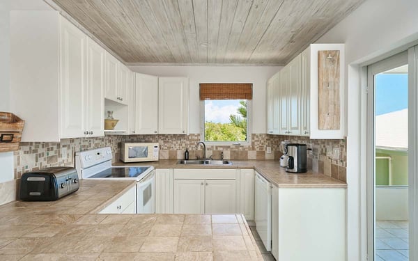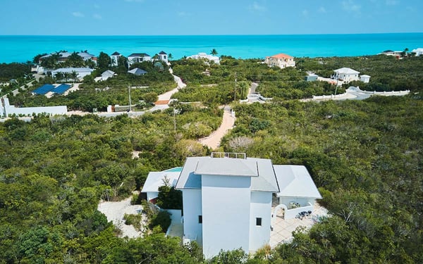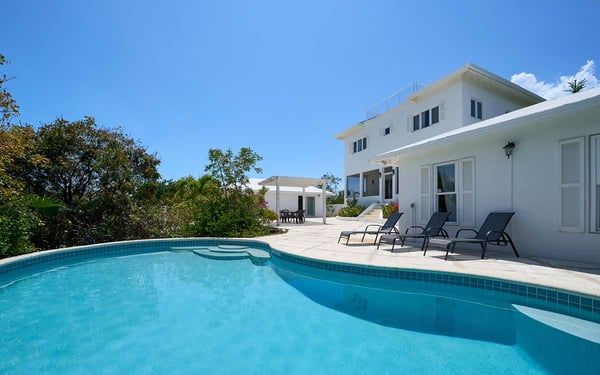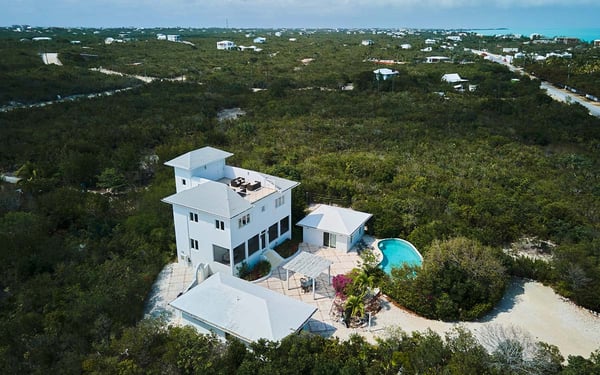 Surf Lodge is a beautiful and tranquil five-bedroom villa with a pool and rooftop deck. It is located on the south side of Providenciales in the very exclusive Long Bay Beach neighbourhood, surrounded by multi-million-dollar homes. Only a two-minute walk from the villa to beach access and Long Bay Beach! Long Bay Beach's crystal clear and shallow waters are perfect for kite surfing, paddle boarding, snorkelling or enjoying long strolls. Surf Lodge is ideal for small groups, like professional kite surfers or large groups like families seeking a secluded, serene, safe and affordable getaway to paradise. You enter the main building through a cozy screened porch. Inside on the main floor, you will find a fully equipped kitchen, dining table, living room and half bath. The second-floor houses two king bedrooms, each with its own spacious walk-in closets, split unit air conditioners, en suite bathroom and ocean views. A few more steps up and you will be on the rooftop deck for everyone to enjoy. With ample seating and a spectacular 180-degree view of Long Bay Beach. This deck is ideal for relaxing under the stars, yoga, enjoying drinks with company or watching the sun come up over the tranquil waters of Long Bay. To the right of the large courtyard and pergola, you will find a single-bedroom guest house. This guest house has a queen bed, a walk-in closet and an en suite bathroom. To the left of the courtyard is a second guest house, this time with two large suites sharing a central bathroom. Both guest houses have their own secure access to the courtyard and pool deck. From the courtyard, you can enjoy the large kidney-shaped pool, which is ideal for cooling off after a long day at the beach or just lounging around. Last but not least is an outdoor shower and laundry room for your convenience. Surf Lodge is less than ten minutes from the local gourmet Graceway grocery store. The Surf Lodge is designed to accommodate guests as a two, three, four or five-bedroom villa with the max occupancy topping off at ten adults.