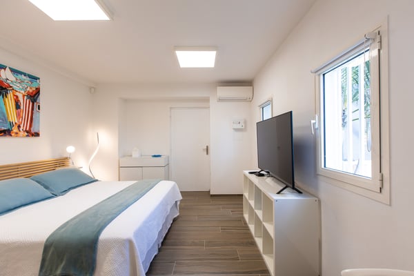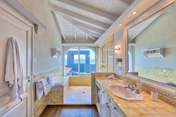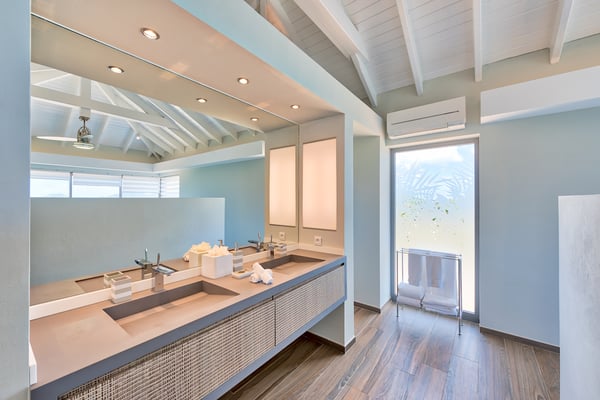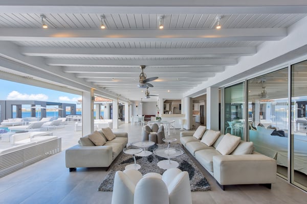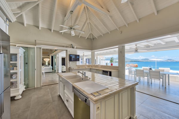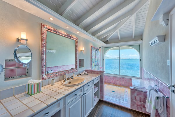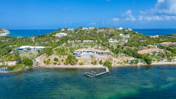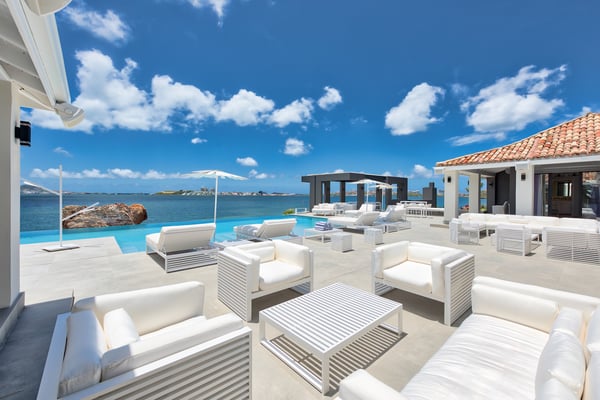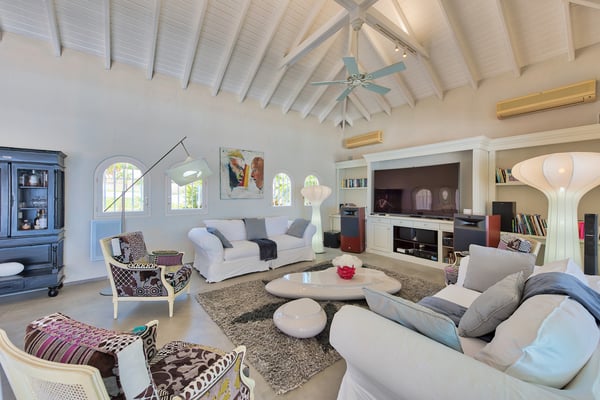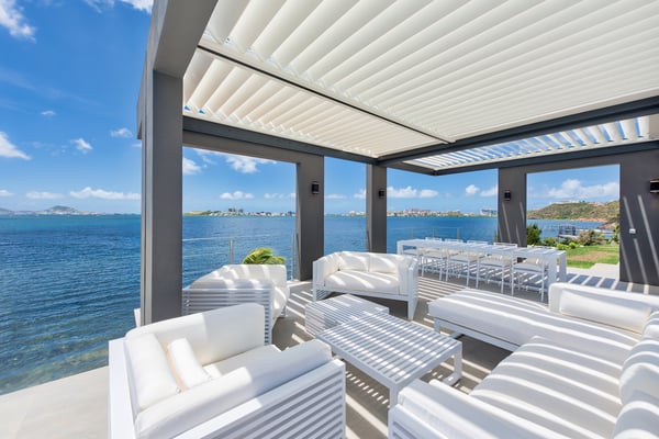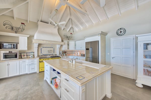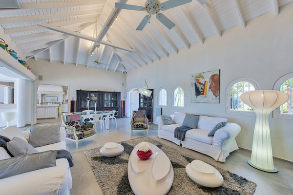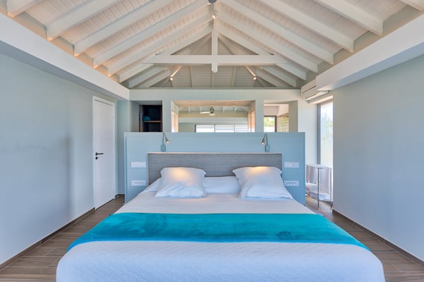 Villa Mirabelle is a stunning waterfront property situated on top of a hill, offering breathtaking views of the Simpson Bay lagoon in St Martin. This gorgeous villa is nestled in the midst of a tropical garden and boasts its own private beach. The villa's prime location allows for easy access to Baie Rouge beach, which is only 300 meters away and can be reached by a pleasant walk. The living room is equipped with a TV, air conditioning, and fans for your comfort, while the covered terrace is also equipped with fans, providing a cool and relaxing space to enjoy the surrounding beauty. Villa Mirabelle features four bedrooms that offer captivating views of the lagoon. Each bedroom is furnished with a king-size bed, a dressing area, and an en-suite bathroom, ensuring privacy and luxury for every guest. The fifth bedroom offers a garden view and its own en-suite bathroom. The villa's kitchen is fully equipped and opens onto the terrace, allowing you to enjoy the lagoon view while preparing meals. It offers everything you need to cater to your culinary desires. Villa Mirabelle is a delightful property for your next vacation in St Martin, whether you are traveling with family or friends. The villa can be rented as a three-bedroom, four-bedroom, or five-bedroom option, depending on your group size and preferences. Additionally, two aqua-bikes are at your disposal, offering a fun and unique way to explore the lagoon. Experience the beauty and tranquility of Villa Mirabelle, where you can create cherished memories on your St Martin getaway.