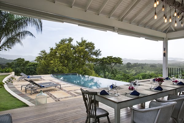 The Coach House at Good Hope is a fantastic informal gathering place for families, retreats, and friends - with space for togetherness, space for discovering nature, and space for alone time. Like traveling through a time warp, visiting Jamaica's countryside is to experience another Jamaica of 30 years ago. The pace is slow, the lifestyle uncomplicated, the people are kind and calm, the service is relaxed, and meals are served family style. For larger groups, there are two extra bedrooms, just 50 paces away, that may be available for an occupancy of 18 guests. The Coach House, situated in the heart of the beautiful 18th-century historic Good Hope Estate, is a country villa with seven contemporary bedrooms, all with ceiling fans, air conditioning & en-suite bathrooms. Recently renovated with stylish new interiors and the addition of a 50-foot infinity edge pool & an open-air dining terrace. Good Hope’s private beach house (25-minute drive away) has a 110-foot white sand beach and calm waters for swimming. Good Hope Estate is about two thousand acres in size and is in the parish of Trelawny, Jamaica. This property sits in a wonderful valley, which is surrounded by the green hills of the cockpit country. The Martha Brae River flows straight through the entire Good Hope land. A fantastic gathering place for families, retreats, and friends,- with space for togetherness, space for discovering nature, and space for alone time. Today, Good Hope is a tourist destination for guests to enjoy the property with Chukka Caribbean’s Eco-tour. The Coach House welcomes guests to immerse themselves in the history, nature & beauty of Jamaica. The Coach House at Good Hope has six bedrooms in the main building (four ground level and two upstairs) and a private seventh bedroom on the lower garden level on the lower garden level. The four bedrooms on the ground level are all located off the beautiful entrance hall and sitting area, with its arched entrance, cut stone walls, and limestone floors. Upstairs, there are two bedrooms and bathrooms, one at each end of the house, both with spectacular views of the valley. A seventh bedroom is very private, perfect for young adults - located at the lower garden level, accessed from the main pool terrace via a metal spiral staircase or a path along the side of the Villa. Guests of Good Hope get a discounted price on activities at Chukka (Good Hope). These can be booked on-island, such as tubing, bamboo rafting, zip line, rum tasting, and eco bike tours. All guests have complimentary access to the pools, water slide, river, and waterfalls at Chukka (Good Hope).