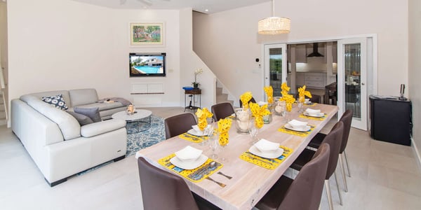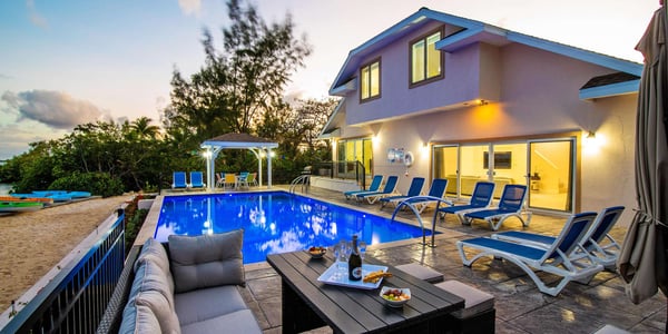 Hidden Cove offers a large family, or two smaller families, a home away from home with the amenities of a vacation resort. With a boat dock directly on a secluded cove, guests can launch kayaks, six come provided complimentary, for a day of exploring above the waves. Better yet, you can even rent jet skis and keep them docked behind the house! Guests wanting to stay on land are welcome to use the bikes included with the home to explore Cayman Kai. Round up the entire family for a group bike ride to The Kaibo Marina for a bite to eat or head to the beaches at Rum Point and Starfish Point all about a 5-minute ride away. Walkable too, of course. The newly renovated swimming pool and sun deck are sure to be a hit with sun-seeking families. Lounge poolside with your fancy shades on and soak up the sunshine while the kids splish-splash in the freshwater pool. Fire up the propane grill for an island cookout and enjoy a bite to eat under the poolside gazebo or alfresco dining area off the pool deck. Inside, plenty of windows overlooking the pool allow natural sunlight to fill the spacious family room. Complete with a living area and a large formal dining table, the family room is the perfect gathering spot after a long day of fun under the sun. Beach Notes Hidden Cove is on the canal behind Cayman Kai and enjoys the privacy of distant views of the mangroves and lush interior of the island. The house offers a seawall dock with room for a rental boat or private charter collection point. Six kayaks are provided and our guests often taken them on mangrove tours. For a barefoot beach visit Gardens of the Kai diagonally across the street; the white sandy beach there is open to the public. General Grand Cayman Beach Notes All beaches in Grand Cayman are technically public since the Crown owns up to the high watermark. The shoreline quality behind your property may vary slightly from the images on our website due to shifting tides and weather patterns. The next-door beach is also always available for your use. Ocean Debris and Sargassum Seaweed Beaches in Grand Cayman may also experience floating ocean debris and sargassum weed seasonally. Sargassum is a generally harmless floating seaweed that has increased in frequency over the years during the summer. The owners do make efforts to remove heavy sargassum and will have the beach raked before your arrival. We try our best to work around mother nature.