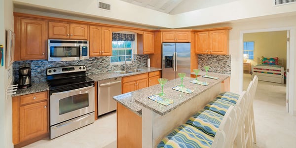 Cayman Sands is an oceanfront villa in Old Man Bay along the north coast. With an open, one-story design, Cayman Sands offers guests an intimate experience across 4,000 sq ft. of living space, plus a one-bedroom detached guest cottage. The main house features 4-bedroom suites with attached baths that have been completely re-tiled and renovated. Both oceanfront suites have walkout access to either the screened pool atrium or the sun deck. Cayman Sands was thoughtfully designed to be opened up on cool winter nights when air conditioning isn't necessary. The freshwater pool is protected by a screened atrium keeping local wildlife and insects at bay from ruining your stay. Optional pool heat is available in the winter months for an additional $35/Day surcharge. The pool atrium comes furnished with a sectional sofa and dining table perfect for evening cocktails or outdoor dining. The view of the large sandy beach is framed by the two wings of the house, an oceanfront gazebo, and two hammocks ideal for long afternoons relaxing with a book or simply enjoying the views. An oceanfront vaulted great room floods the villa with natural light and stunning views through 30 feet of sliding glass doors. A recently upgraded kitchen offers all the modern appliances you would expect, as well as dishware, cookware, and cutlery. The living area is furnished with a wall-mounted television, plush couches, and a sleeper sofa for small children only. Beach Notes Centrally located, the homes in Old Man Bay offer perhaps the best shore diving and snorkeling on the entire island. The beaches are mostly sand, but can also have some natural rock formations too. Either way, with the varied marine life we have in the water, you will want to wear foot protection (pool shoes or fins). The beaches here offer great seashell collecting and turtle sightings in summer! Old Man Bay is only 5 minutes from two large resorts in the east end (Morritt's and The Reef) that offer manicured beaches as well as restaurants, a modern grocery store, liquor store, gift shops, a Subway sandwich shop, and a cafe/pastry shop. These two resorts also offer scuba, snorkel trips, jet skis, windsurfing, kiteboarding, oceanfront pools and bar service. Heading west, Kurt's Korner is a local restaurant within walking distance. Over the Edge restaurant is about one mile further west offering breakfast, lunch, and dinner menus at affordable prices. Another 15 minutes west of Old Man Bay is the famous Rum Point Club with water sports, restaurant bar and grill, a gift shop, and a barefoot beach with table service. General Grand Cayman Beach Notes All beaches in Grand Cayman are technically public since the Crown owns up to the high water mark. The shoreline quality behind your property may vary slightly from the images on our website due to shifting tides and weather patterns. The next-door beach is also always available for your use. Ocean Debris and Sargassum Seaweed Beaches in Grand Cayman may also experience floating ocean debris and sargassum weed seasonally. Sargassum is a generally harmless floating seaweed that has increased in frequency in recent years. Although sargassum is an unsightly nuisance, it is largely seasonal in summer. The owners do make efforts to remove heavy sargassum and will have the beach raked prior to your arrival. We try our best to work around mother nature.