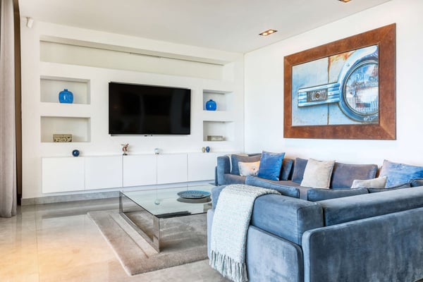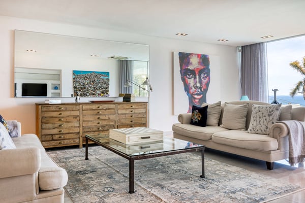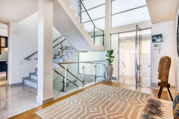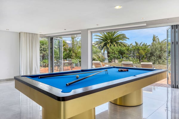 Anella II is a magnificent three-level, 5-bedroom villa offering a serene and private space with stylish furniture and fittings. One enters the villa where you will find the kitchen, dining and living areas. The lounge area flows onto a wooden terrace that overlooks the Atlantic Ocean and the famous Twelve Apostles mountain range. All the bedrooms are en-suite. Four of the five bedrooms are located on the top floor, with the 5th bedroom located on the bottom floor. On the lower level, there is a further lounge and entertainment area that includes a pool table and bar area that leads onto the spacious pool deck. Situated on the Glen side of Camps Bay on a quiet, secure road, this is the perfect family villa. The lower level offers a spacious entertainment lounge (with TV, bar and pool/ping pong table) which flows out the large deck private deck and swimming pool.
