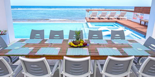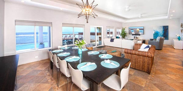 Welcome to Present Moment, a stunning newly renovated beachfront villa on the outskirts of Bodden Town beach, designed to create unforgettable vacation memories with family and friends. This spacious villa sits directly on a gorgeous beach with sweeping ocean views. The shoreline is a delightful mix of soft sand and pebbles, perfect for beachcombing and relaxation. For water lovers, the ocean offers entry with water shoes, leading to a sandy bottom less than 100 yards from shore. The area is a snorkeler’s paradise, offering spectacular views of vibrant marine life just steps from the villa. After exploring the waters, rinse off in the brand-new outdoor shower, then enjoy the completely remodeled infinity pool. Relax on the Baja shelf with submerged loungers or ease into the freshly upgraded heated spa—ideal for melting your troubles away. The pool area also includes a raised sun deck overlooking the ocean and a redesigned outdoor kitchen featuring a propane grill, pizza oven, and prep area, perfect for hosting outdoor gatherings. Inside, the villa features expansive, light-filled living spaces with contemporary decor. A full wall of oceanfront windows offers panoramic views, blending indoor and outdoor living seamlessly. The open-concept design creates a welcoming space for family gatherings, whether sharing meals or enjoying a game night. After a day of island exploration, settle into the comfy sectional sofa for a movie or family board game. This single-story private residence comfortably sleeps up to 12 guests across four well-appointed bedroom suites, each with a private bath. Beach Notes Centrally located, the homes in Bodden Town offer shore diving and snorkeling as well as protected beaches for kayaking. The beaches are mostly sand, but can also have some natural rock formations too. Either way, with the varied marine life we have in the water, you will want to wear foot protection (pool shoes or fins). The beaches here offer great seashell collecting and turtle sightings in summer! Bodden Town is only 20 minutes from town and 15 minutes from 2 large resorts in the east end, Morritt's and The Reef. Both offer manicured beaches and restaurants, a grocery store, liquor store, souvenir shops, and a cafe/pastry shop. These two resorts also offer scuba, snorkel trips, jet skis, windsurfing, kiteboarding, ocean-front pools, and bar service. Heading east, the South Coast restaurant is only 5 minutes away. Other casual restaurants are nearby. You are 25 minutes from the famous Rum Point Club & Kaibo with water sports, restaurants, beach bars, a gift shop, and a barefoot beach with table service. General Grand Cayman Beach Notes All beaches in Grand Cayman are technically public since the Crown owns up to the high water mark. The shoreline quality behind your property may vary slightly from the images on our website due to shifting tides and weather patterns. The next-door beach is also always available for your use. Ocean Debris and Sargassum Seaweed Beaches in Grand Cayman may also experience floating ocean debris and sargassum weed seasonally. Sargassum is a generally harmless floating seaweed that has increased in frequency over the years during the summer. The owners do make efforts to remove heavy sargassum and will have the beach raked prior to your arrival. We try our best to work around mother nature.