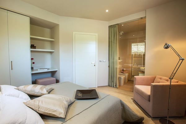 Villa Tullia was recently and beautifully restored to feature a contemporary look and style. This independent three-story villa, nestled in a peaceful area, forms part of an expansive estate with breathtaking views of the Tuscan countryside. All rooms are very bright and airy thanks to their wide windows from where guests can admire, in blissful ecstasy, the beautiful and striking Tuscan countryside. The villa is set in one of the most requested locations: within walking distance to town. The historical town of Cortona is just a few minutes’ walk from the villa (400 meters), so and if you are looking to stroll into town and then come home for dinner on foot, there is no need to look any further. Also, on the same estate, there is an additional independent cottage (for 4 persons) with its own private swimming pool and garden, which can be rented together with the main villa (depending on availability). Each of these constructions has private grounds and completely respects the privacy of the guests. CIN: IT051017B5CSG55U9I