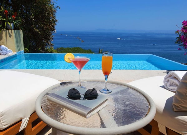 Construction is taking place nearby and may create some noise issues. Contact a Rental Escapes villa specialist for more information about how this may impact your stay. Tropical, tranquil, and steps from the sand, The Beachouse one-bedroom villa boasts over 1,200 square feet of spacious living with magnificent views of Banderas Bay, a private infinity pool, and fully-equipped gourmet kitchen with outside dining terrace. Verano Beach Villas at Puerto Vallarta The private beach, bar and patio reserved are expressly for guests of the four Villas at Verano. Here, the staff prepare and serve breakfast and lunch every day. Should you wish to arrange a private dinner on the beach, we’re here for you. Strolling mariachis? It’s our pleasure. Even fireworks. We love to help our guests celebrate life’s most magical moments. Once here, you can lounge on the gated beach club sands or take the private stairs to the public beach and gentle surf. Kayaks, lounge chairs and umbrellas are available on the public beach, and our staff is always on call to deliver a drink or beachside snack.