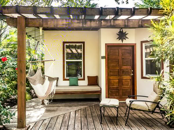 As of June 18th 2024 the Helipad will be closed due to ongoing ground work in the area, rendering it unsafe for helicopter landings. For further details on how this might affect your stay, please reach out to a Rental Escapes villa specialist. Surround yourself in the jungle wilderness in our 700-square feet home suite with locally inspired décor. This luxury suite features a comfortable king-size bed with individual front and back decks, a private plunge pool in the garden, and a private outdoor shower.
