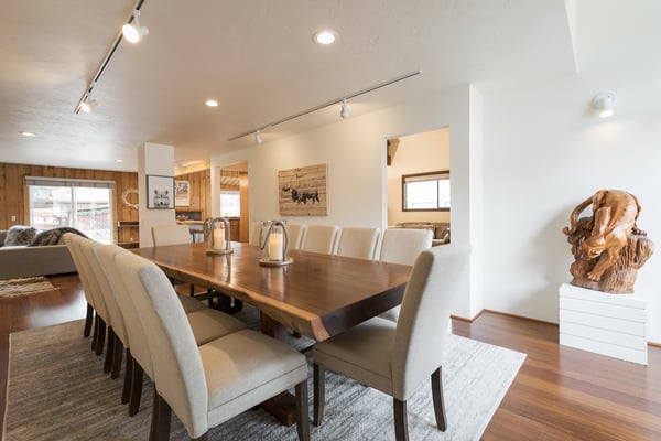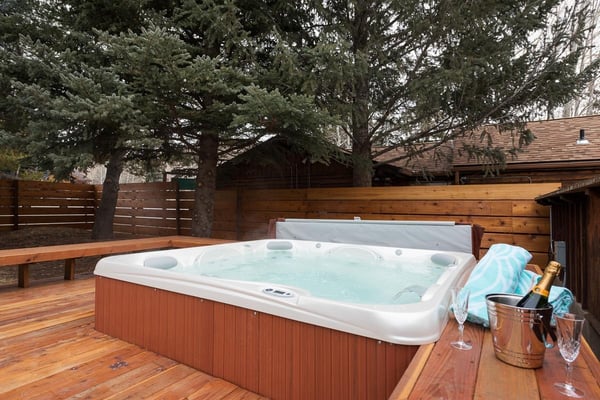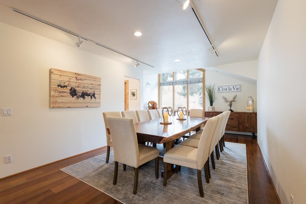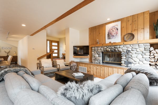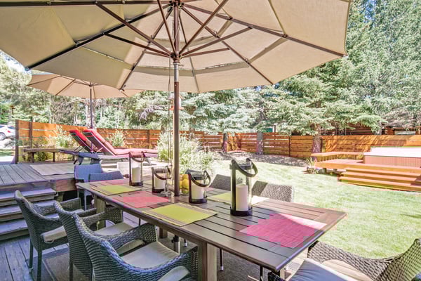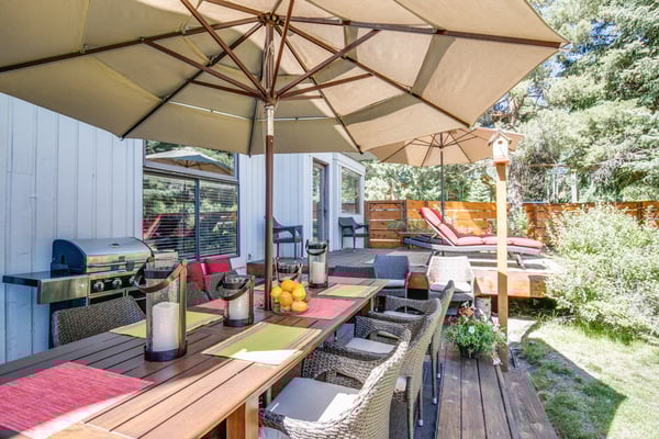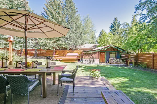 NOTICE: There will be a large construction project next door to this home beginning Mid August 2022+ through October 2024. Construction hours are Monday - Sunday 8:00 AM to 7:00 PM. The project will increase noise, limit privacy, generate dust and effect the outdoor space of this home. Pricing is adjusted to reflect this issue. Please be aware of the noise and inconvenience of the construction project inside and outside of the home. Rental Escapes has partnered with Ski Butlers to offer you the best rental experience in the industry. No more lines. Ski Butlers is a full-service ski and snowboard company that delivers the equipment to you and for a limited time, we are offering a free upgrade on the package you select! Contact a reservations manager for more information. This chic family-friendly home is in the center of downtown Ketchum just steps away from Atkinsons' Market, Ketchum Library, weekly farmers market, coffee shops, restaurants, bars, boutiques and art galleries. Combining luxury and comfort whilst retaining its unique Sun Valley heritage, this five bedroom house sports new furnishings and a well appointed gourmet kitchen with views of Bald Mountain. Check the mountain conditions while having a cup of coffee in the morning. What makes this property unique is the large fenced yard that provides privacy right in the heart of downtown Ketchum. Featuring an outdoor deck with unobstructed views of Baldy, a new seven-person spa and a sauna, the yard is just the perfect place to enjoy long summer evenings. The main level features an open-concept kitchen, cozy living room with wood burning fireplace, and exquisite dining table with seating for 12. The den is equipped with wet bar and plenty of board games for lounging after a hard day of play. It also has a desk and Bluetooth printer/copier/scanner if you need to get some work done. There is an adjoining in-law suite with separate entrance featuring a king size bed, en-suite bath, fully stocked kitchenette with mini-frig, cooktop, and convection microwave oven. Its rustic style living room hosts a stone fireplace, Smart TV, Blu ray player, and Bluetooth sound bar speaker with additional entrance to the outdoor deck. The upstairs master bedroom features a king size bed with goose down comforter and pillows, HDTV and en-suite bath including a jetted bathtub perfect for bubble baths. Three additional upstairs cozy bedrooms, each with queen beds and one with queen bunk beds share a third bathroom. Two of the bedrooms have smart TV's. There is a covered carport for up to two cars. Please be advised that this home does not have air conditioning.