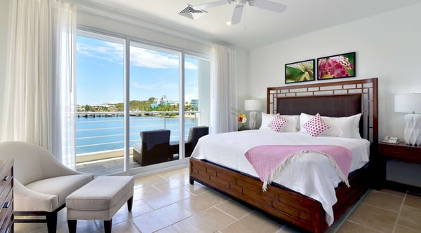 The Marina View Townhouse overlooks the vibrant Oyster Pond Marina and is two levels with the living and dining area as well as kitchen, half bathroom, and private terrace located on the main level. The upper level offers two bedrooms with en-suite bathrooms and a private terrace. The fully equipped gourmet kitchen features an electric cook top, oven, microwave, double-door refrigerator with ice machine, dishwasher and temperature-controlled wine cooler, blender, coffee maker, and toaster. The primary bedroom offers a king-sized bed, flat-screen satellite TV, private terrace, spacious closet, safe and en-suite bathroom with rain shower. Premium bedding and sheets are used throughout. The guest bedroom offers a queen-sized bed, flat-screen satellite TV, spacious closet and en-suite bathroom with rain shower.